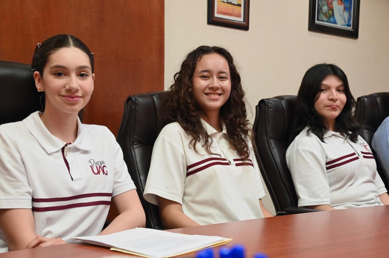 Participan las alumnas Agia Sofía Casados Mazo, Amairani Suemi Pérez Jiménez y Brizzia Yareitzy Tinoco Pliego, de la Preparatoria de la Universidad Autónoma de Guadalajara (UAG).