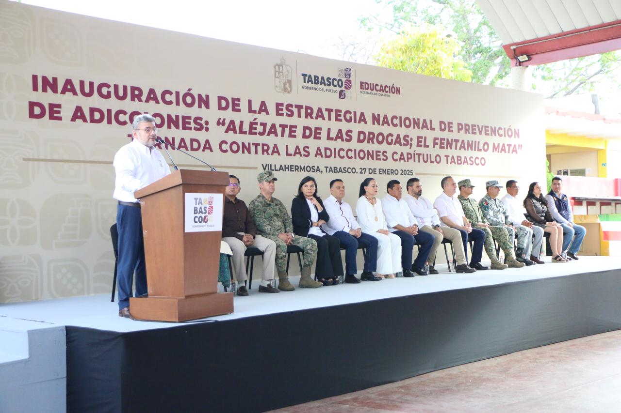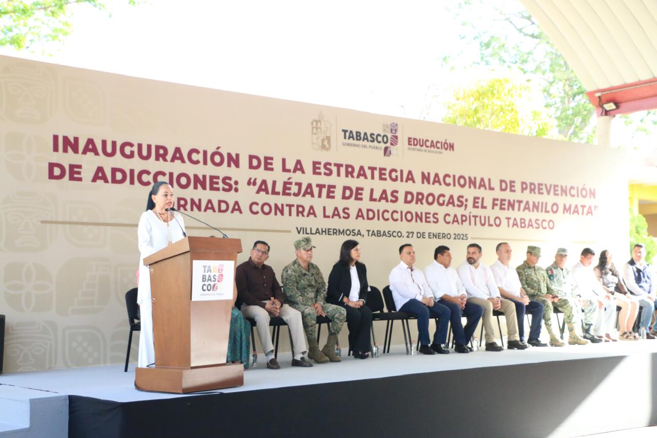 La Estrategia Nacional “Aléjate de las drogas. El fentanilo te mata”, que promueve el Gobierno de México, a través de la Secretaría de Educación Pública y el sector Salud, arrancó en Tabasco con el objetivo de que más de 135 mil adolescentes y jóvenes conozcan el daño que causan las sustancias nocivas y se alejen de ellas por medio de actividades deportivas y lúdicas.