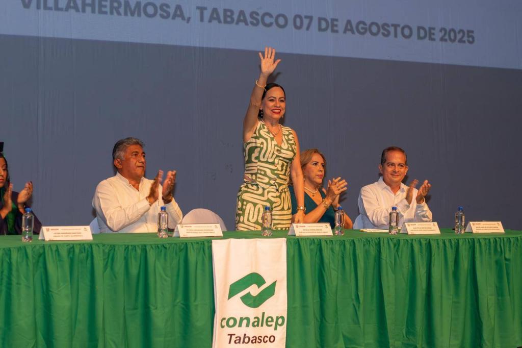 Con la honrosa representación personal del gobernador Javier May Rodríguez, la secretaria de Educación, Patricia Iparrea Sánchez, asistió a la ceremonia de graduación de la Generación 2022–2025 del Colegio Nacional de Educación Profesional Técnica (CONALEP) Tabasco, institución que representa un pilar en la formación de profesionales técnicos con alto compromiso hacia el desarrollo de la entidad y del país.