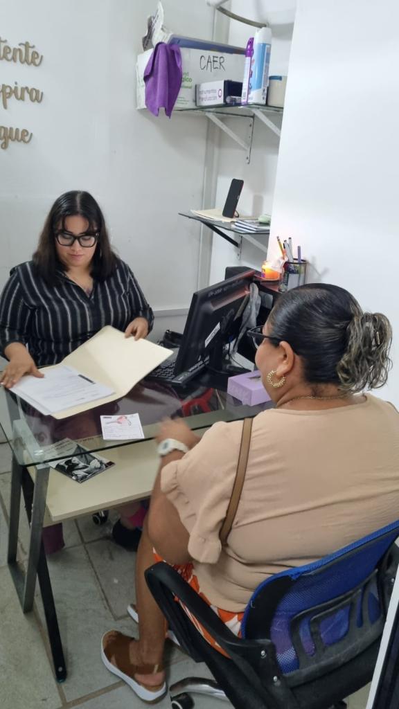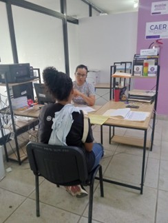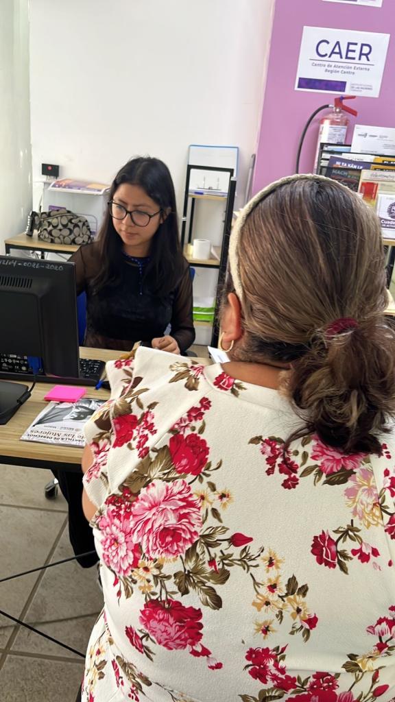 CAER CENTRO, a través de la recepción se recibe a las usuarias como primer contacto, es quien se encarga del registro de datos personales y orientación para canalizar a trabajo social, apoya con actividades como creación de evidencias fotográficas, archivo y elaboración de oficios.