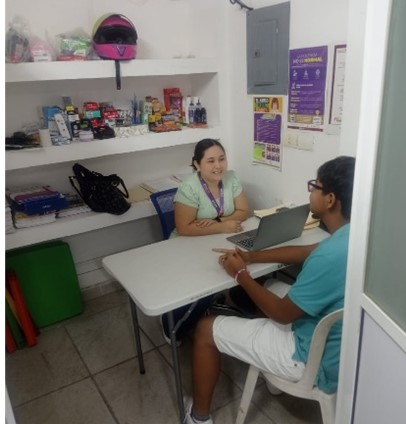 Primera atención a usuaria del Centro. Con la usuaria se trabaja la gestión emocional.