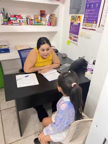Atención primera vez a menor femenina de 4 años. Se realiza entrevista inicial y rapport.