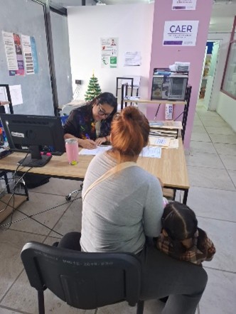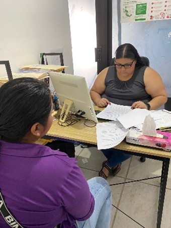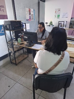 Apoyo en el área de recepción para la atención y registro de usuarias.