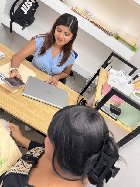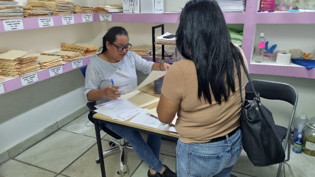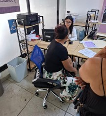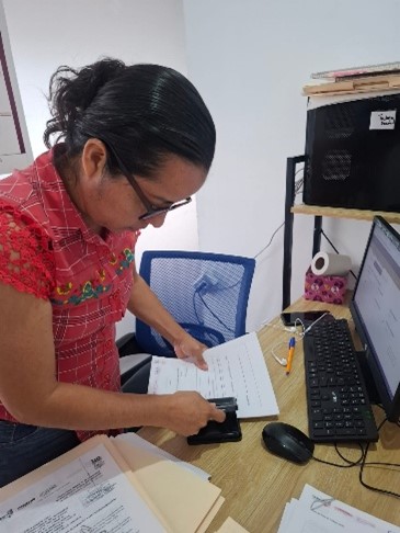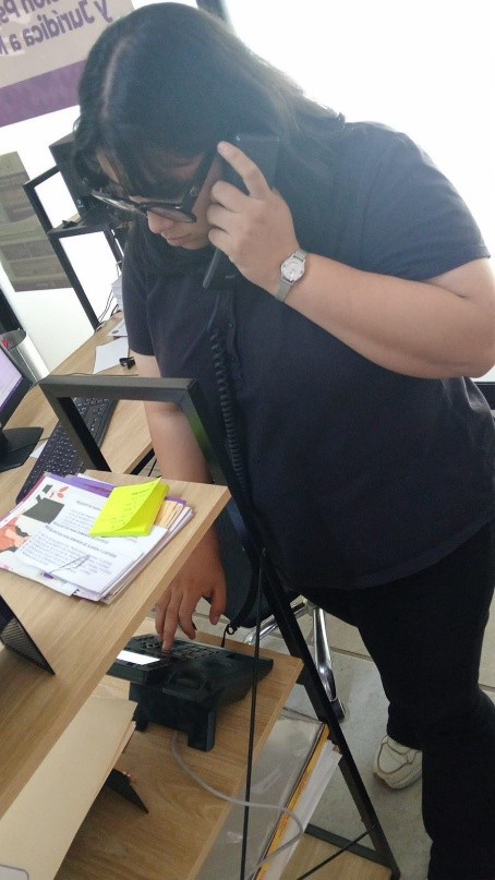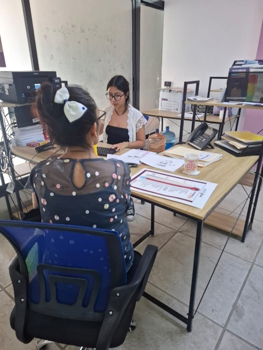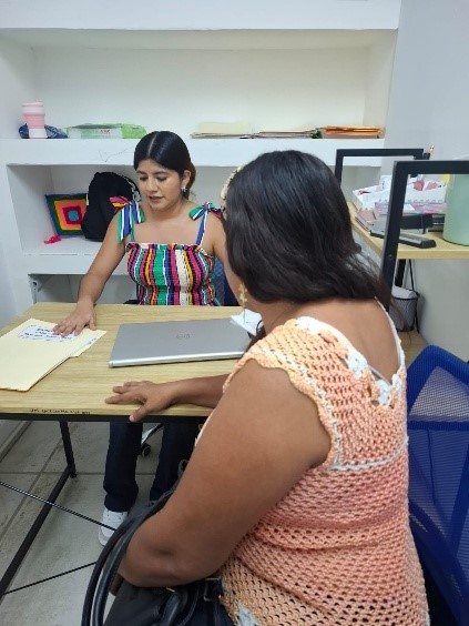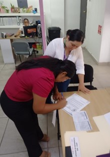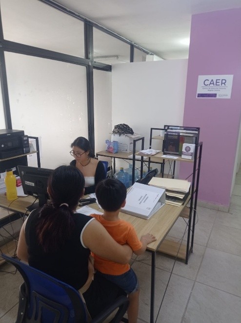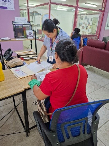 CAER CENTRO, a través de la recepción se recibe a las usuarias como primer contacto, es quien se encarga del registro de datos personales y orientación para canalizar a trabajo social, apoya con actividades como creación de evidencias fotográficas, archivo y elaboración de oficios.