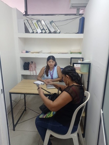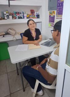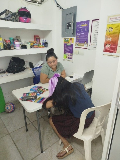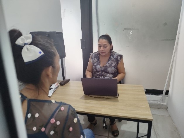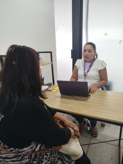 CAER CENTRO, a través del área de trabajo social, brinda atención y orientación de primera vez a mujeres víctimas de violencia; acompañamiento y canalización a las áreas especializadas; detección de casos de violencia extrema y canalización a refugio temporal a quienes su vida están en riesgo inminente, siguiendo el protocolo de atención.