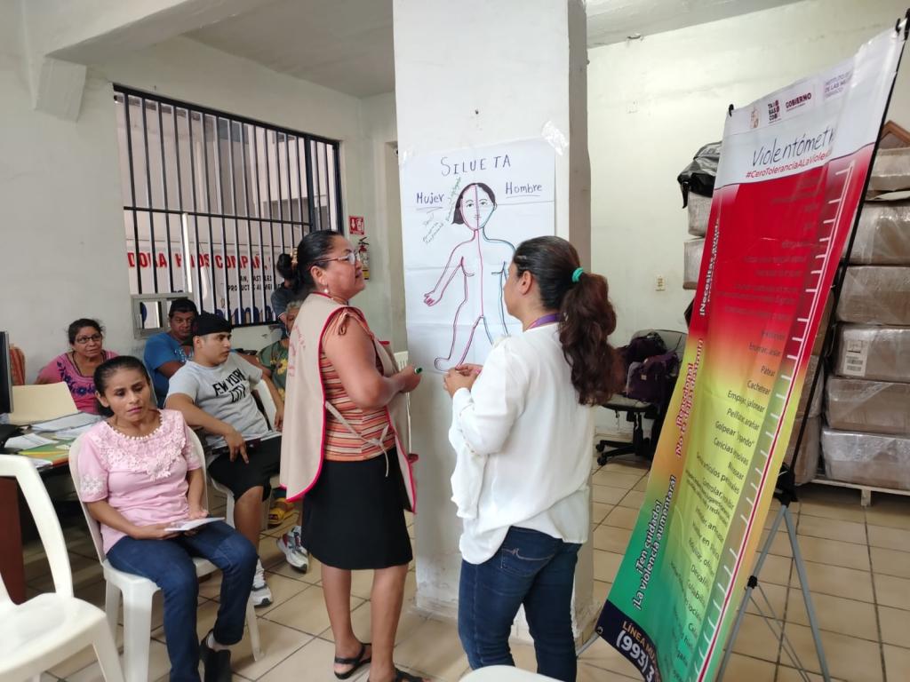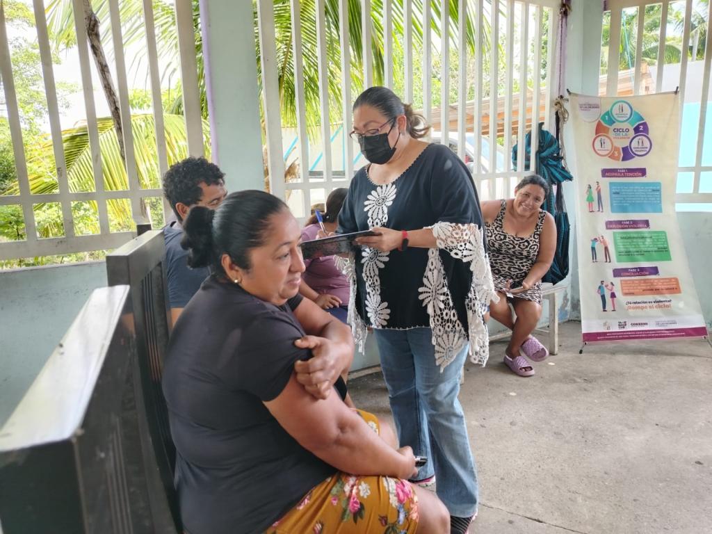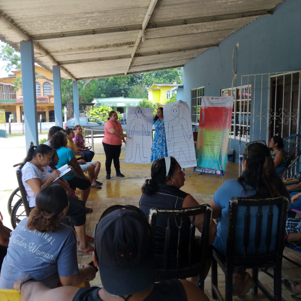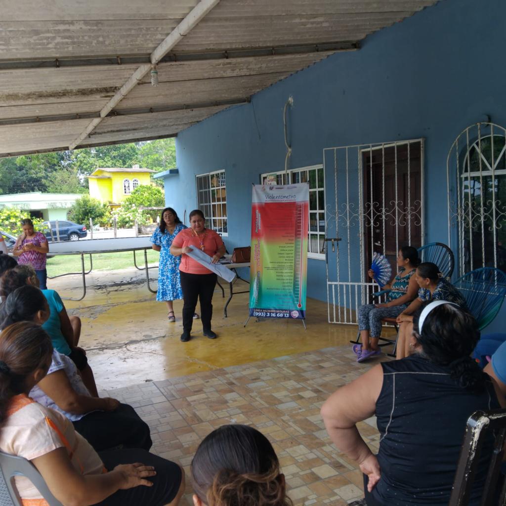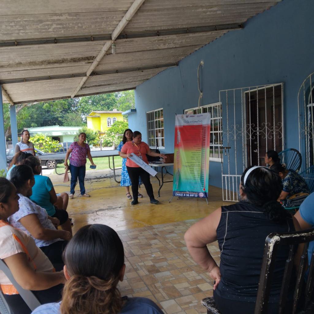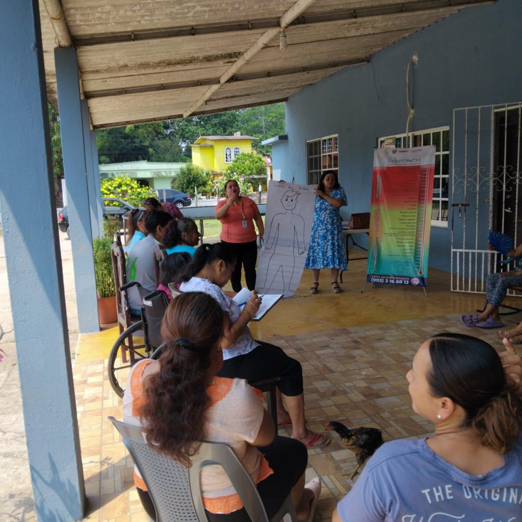 El Instituto Estatal de las Mujeres de Tabasco a través del Departamento de Capacitación de la Subdirección de Psicología y Salud Integral realizó un taller reflexivo para mujeres sobre el reconocimiento de violencias y mejoramiento emocional en la Ranchería Galeana 2da. Sección del Municipio de Jalpa de Méndez, Tabasco; este tuvo por objetivo sensibilizar desde un enfoque de derechos y diferencial frente a la construcción sociocultural de las mujeres y el reconocimiento del ciclo de violencias para desnaturalizar prácticas vulneradoras de los derechos humanos y fomentar espacios seguros y libres de violencias, coadyuvando así en el bienestar físico y emocional de las mujeres; a su vez se dio a conocer la Cartilla de Derechos de las Mujeres como una herramienta para la defensa y protección los DDHH.