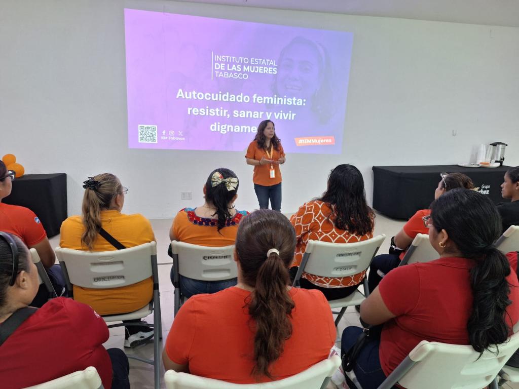 El Instituto Estatal de las Mujeres de Tabasco a través del Departamento de Capacitación de la Subdirección de Psicología y Salud Integral realizó una jornada de capacitación en “Autocuidado feminista para la salud y el bienestar de las mujeres”, dirigida a mujeres que laboran en el Grupo Sánchez en el municipio de Centro; tuvo por objetivo promover el reconocimiento del autocuidado como una estrategia fundamental para el bienestar emocional y físico de las mujeres y así promover acciones que permitan la tramitación de emociones, el fomento de prácticas cotidianas para el autocuidado que propicien vivir dignamente y libres de violencias.