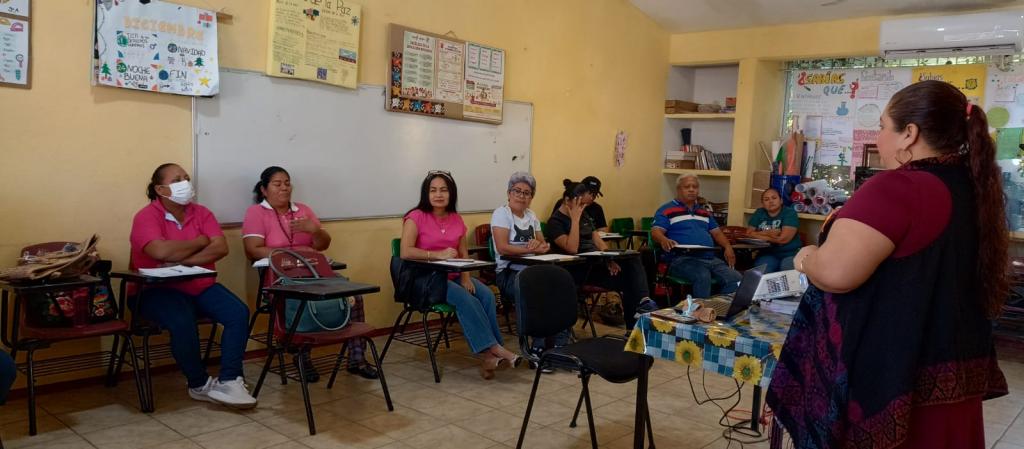 El 8 de enero el Instituto Estatal de las Mujeres atraves del Departamento de Capacitación de la Subdirección de Psicología y Salud Integral realizó la capacitación en Autocuidado y enfoque psicosocial, la cual estuvo dirigida a maestras y maestros de Telesecundaria que pertenecen a la USAER No. 68, en la sede de la Escuela Telesecundaria General Francisco Villa de la Ranchería Acachapan Primera sección del municipio de Centro. Tuvo por objetivo brindar herramientas para el autocuidado y la comprensión del enfoque psicosocial que posibilite el fortalecimiento de sus habilidades emocionales y educativas en aras de evitar el desgaste emocional.