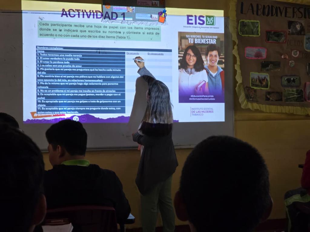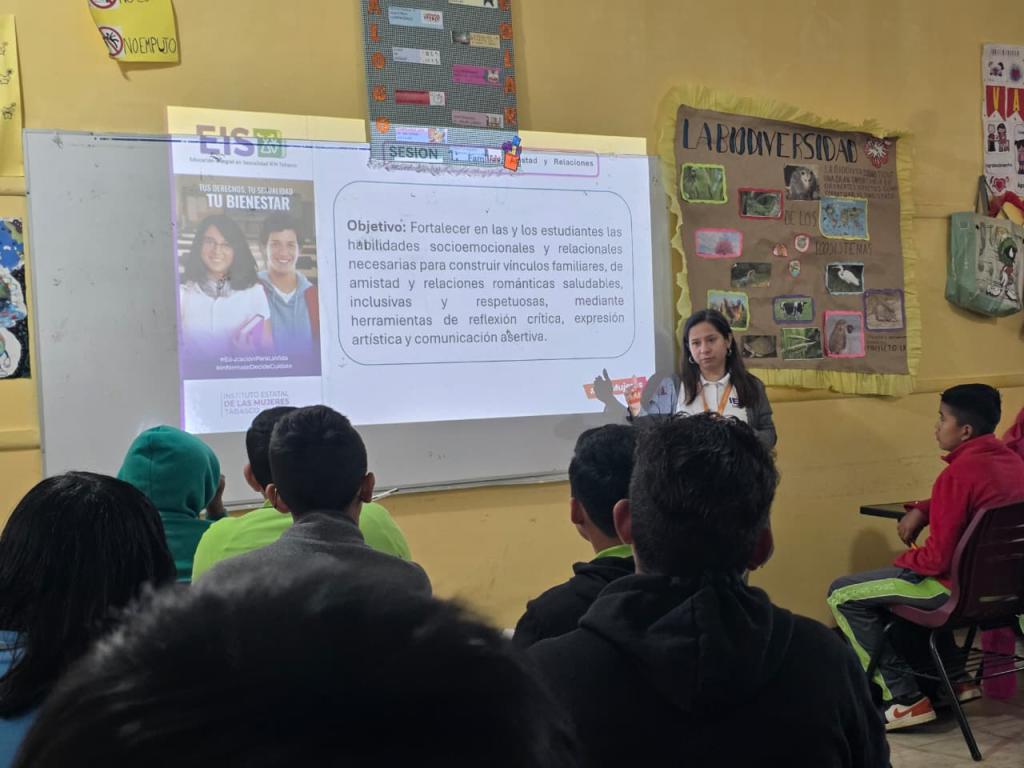 El Instituto Estatal de las Mujeres de Tabasco a través del Departamento de Capacitación de la Subdirección de Psicología y Salud Integral dio inicio a la Escuela Tejedora de Saberes en Educación Integral en Sexualidad, la cual lleva por slogan “Tus Derechos, Tu Sexualidad y Tu Bienestar” en la Telesecundaria Gral. Francisco Villa de la Ranchería Acachapan del Municipio de Centro. Esta primera sesión tuvo por objetivo fortalecer en las y los estudiantes las habilidades socioemocionales y relacionales necesarias para construir vínculos familiares, de amistad y relaciones románticas saludables, inclusivas y respetuosas.