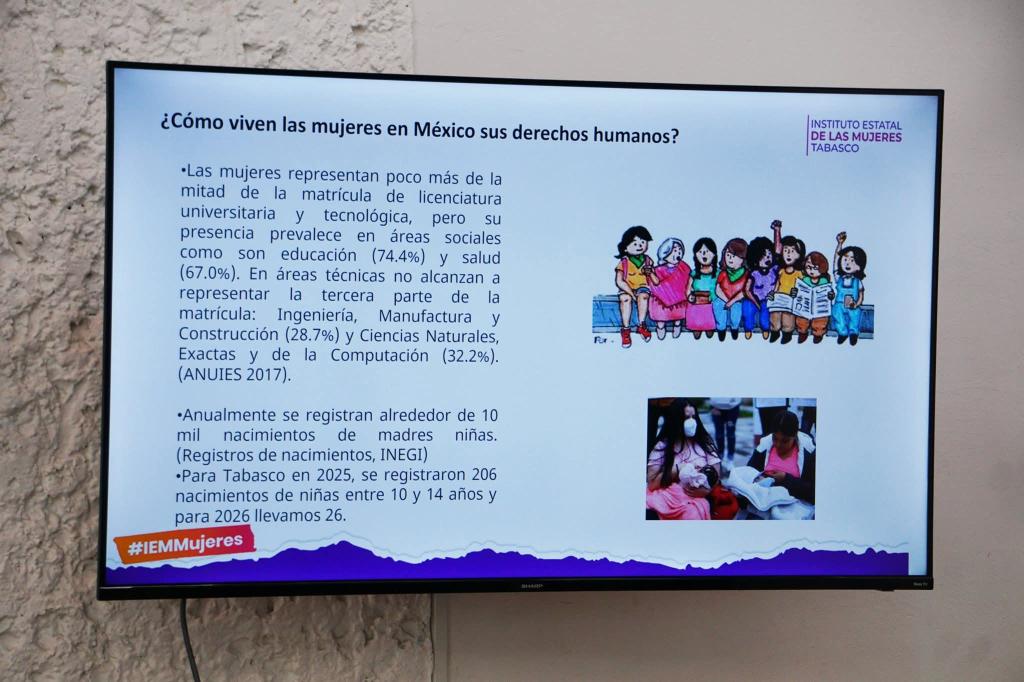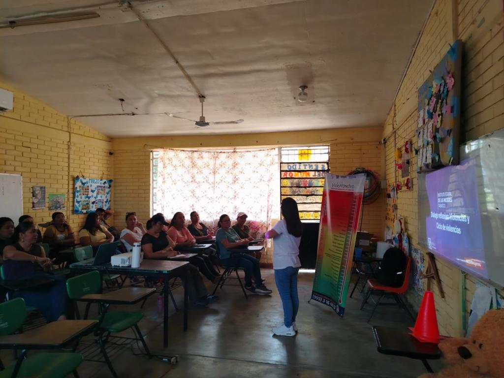 El Instituto Estatal de las Mujeres de Tabasco a través de los Departamento de Capacitación y Psicología de la Subdirección de Psicología y Salud Integral, en el marco de la conmemoración del 8 de marzo realizo un taller reflexivo en prevención de violencias y derechos de las Mujeres, dirigido a madres de familia de la Escuela telesecundaria Técnica Gral. Francisco Villa de la Ranchería Acachapán, Colmena Primera sección, del municipio de Centro. Este tuvo por objetivo promover la reflexión crítica y el fortalecimiento de conocimientos y actitudes en las mujeres sobre la prevención de las violencias y la promoción de los derechos humanos, desde un enfoque de derechos, que permita reconocer situaciones de vulneración y fortalecer acciones individuales y colectivas para la construcción de entornos seguros, igualitarios y libres de violencia.