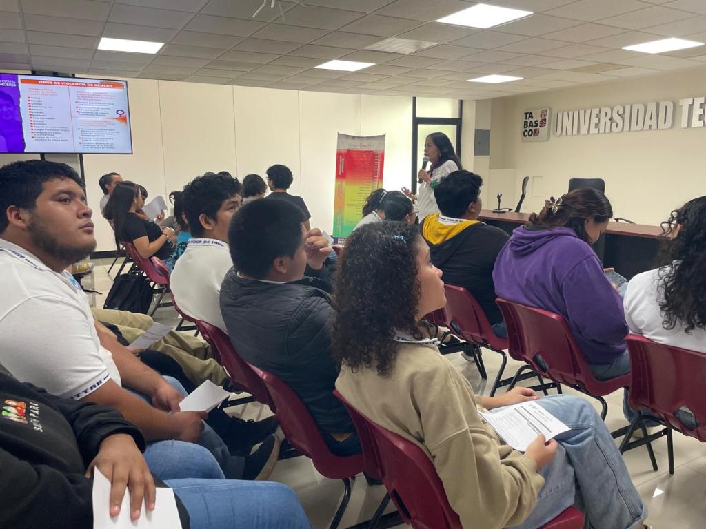 El Instituto Estatal de las Mujeres de Tabasco a través del Departamento de Capacitación de la Subdirección de Psicología y Salud Integral continúa desarrollando la Escuela Tejedora de Saberes en Educación Integral en Sexualidad “Tus Derechos, Tu Sexualidad y Tu Bienestar” en el plantel 8 del CECyTE del Municipio de Teapa. Esta sesión denominada Violencia de género tuvo por objetivo que las y los estudiantes identifiquen la violencia de género como una violación a los derechos humanos, reconozcan sus diferentes manifestaciones y desarrollen herramientas para la prevención, el autocuidado y la búsqueda de apoyo.