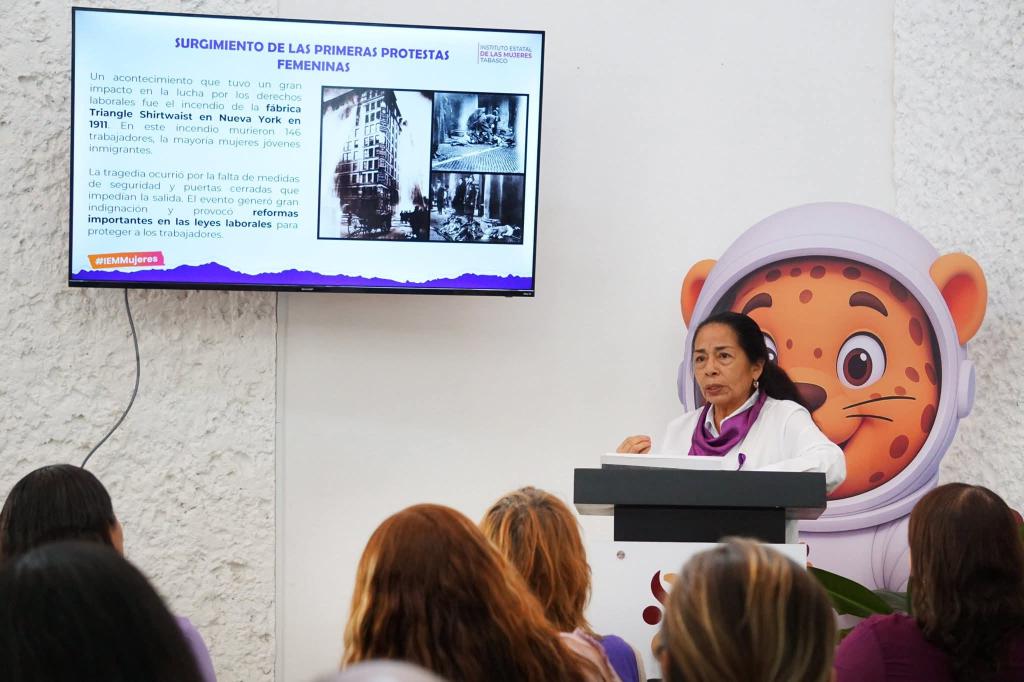 El Instituto Estatal de las Mujeres de Tabasco a través de los Departamento de Capacitación y Psicología de la Subdirección de Psicología y Salud Integral, en el marco de la conmemoración del 8 de marzo realizó la plática informativa ¿porque se conmemora el 8 de Marzo Dia Internacional de la Mujer?, la cual estuvo dirigida al personal del Consejo de Ciencia y Tecnología del Estado de Tabasco CCYTET. Esta tuvo por objetivo brindar un contexto histórico de la lucha de las mujeres obreras para reconocer los avances en derechos y sensibilizar frente a la importancia de las mujeres en construcción de sociedades justas y equitativas.
