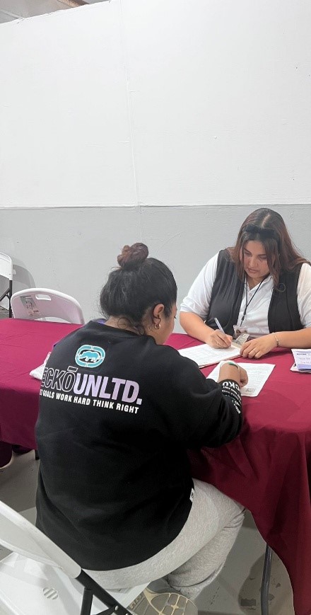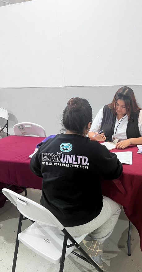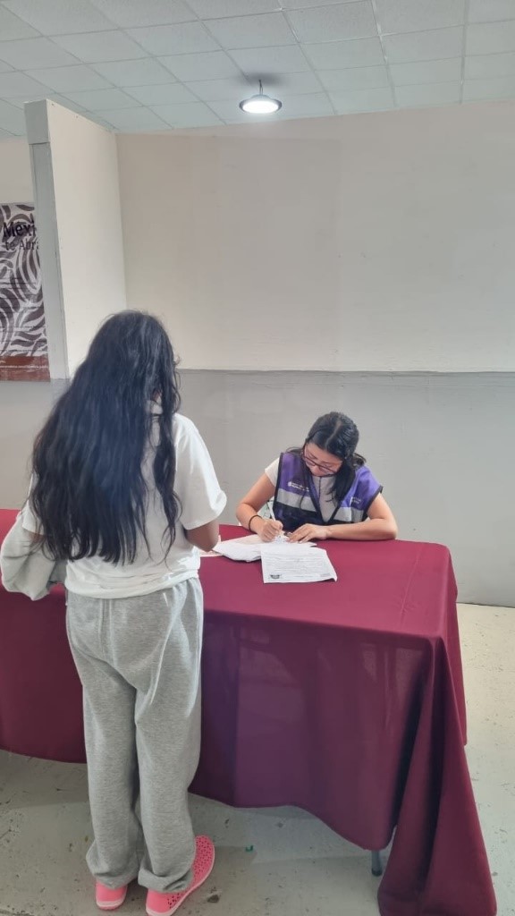 Atención a Mujeres Connacionales en las JORNADAS DE REPATRIACIÓN, relativa al programa “MEXICO TE ABRAZA” llevado a cabo en el CENTRO DE ASISTENCIA SOCIAL PARA NIÑAS, NIÑOS Y ADOLESCENTES ACOMPAÑADOS EN CONTEXTO DE MIGRACIÓN. En la zona habilitada para recibir a las y los repatriados. Los días 17 y 18 de marzo del 2026 se recibieron y se atendieron un total de 63 mujeres provenientes de los Estados Unidos que llegaron en 4 vuelos. Se les dio la Bienvenida e Información sobre los servicios de La LINEA MUJER SEGURA del Instituto Estatal de la Mujeres y de la Línea 079 Línea Mujeres a nivel nacional. También se les informa que en casos de violencia, pueden contactar a los Institutos de sus respectivos Estados.