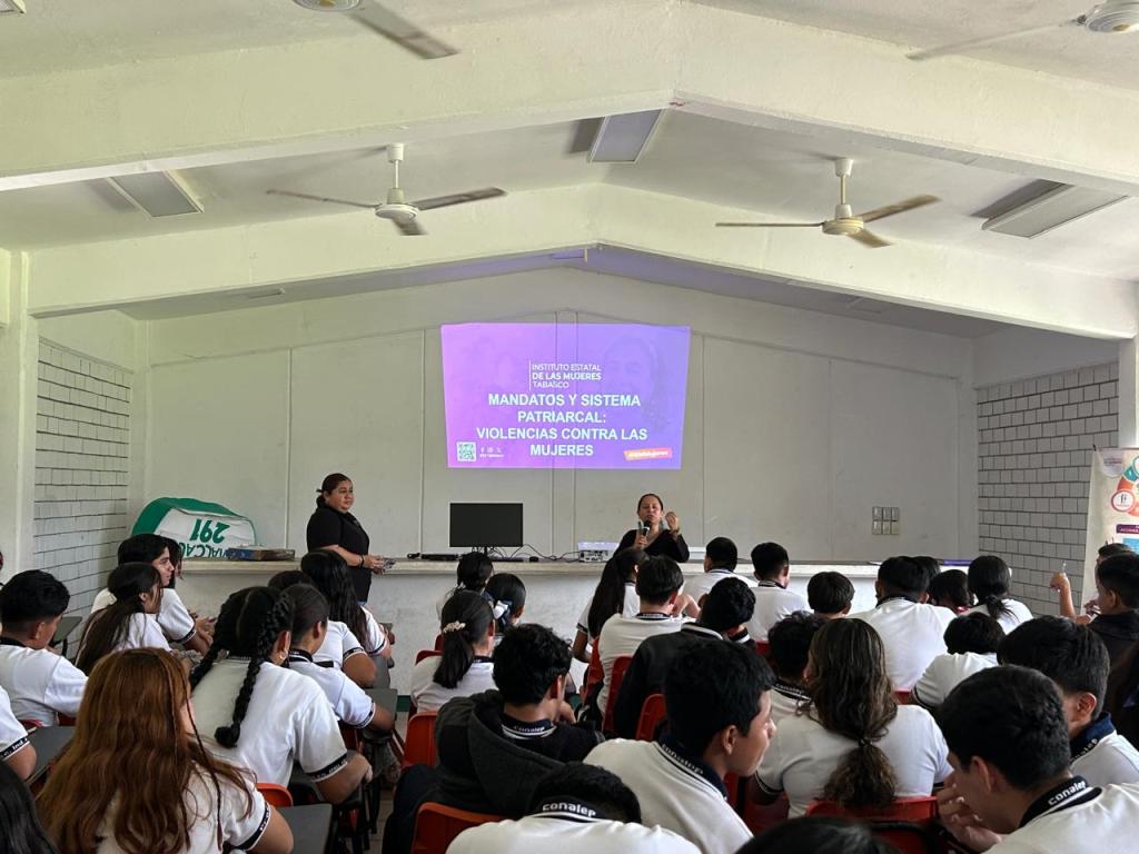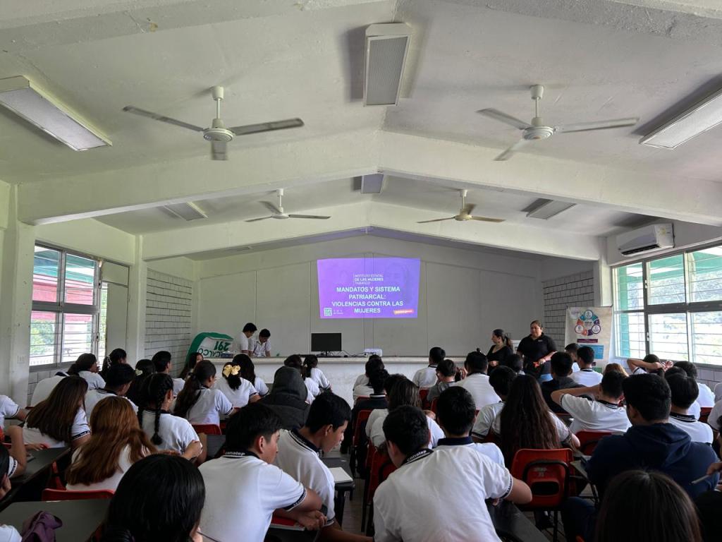 El Instituto Estatal de las Mujeres de Tabasco a través del Departamento de Capacitación de la Subdirección de Psicología y Salud Integral realizo la jornada de capacitación en “Mandatos y sistema patriarcales: Violencias contra las mujeres”, esta se llevó a cabo con estudiantes de CONALEP 291 del municipio de Comalcalco, tuvo por objetivo Sensibilizar, concientizar y brindar herramientas psicopedagógicas para la generación de procesos de transformación y eliminar imaginarios que naturalizan las violencias para promover acciones que posibiliten espacios seguros y libres de violencias para Niñas, Niños y Adolescentes.