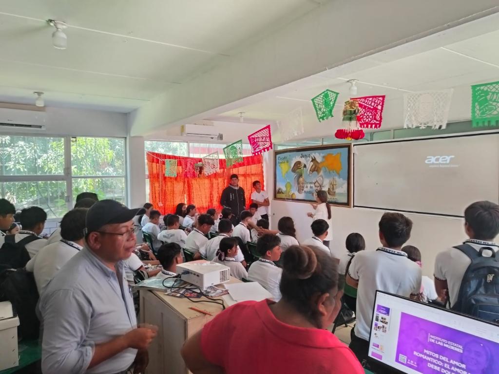 El Instituto Estatal de las Mujeres de Tabasco a través del Departamento de Capacitación de la Subdirección de Psicología y Salud Integral realizo la capacitación “Mitos del Amor Romántico”, la cual se llevó a cabo en el CECyTE Plantel 18 Ranchería La Encrucijada Tercera Sección Cárdenas, tuvo por objetivo deconstruir las ideas que social y culturalmente están establecidas alrededor del amor que han conducido a relaciones donde se naturaliza la violencia. Esta fue de gran aceptación y promovió la importancia de transformar estos imaginarios y crear relaciones más igualitarias, basadas en el respeto y reconocimiento de la otredad como eje fundamental para dar y expresar amor.