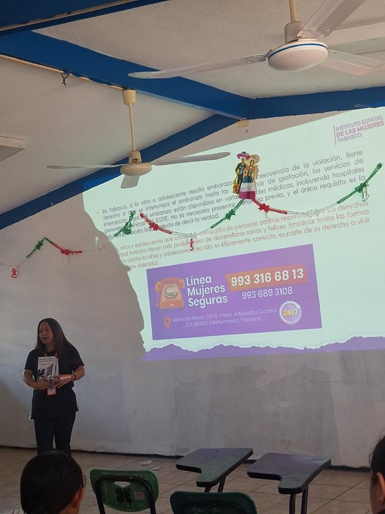 El Instituto Estatal de las Mujeres de Tabasco a través del Departamento de Capacitación de la Subdirección de Psicología y Salud Integral realizo la capacitación en Abuso Sexual Infantil dirigida a estudiantes de la Escuela Secundaria General José Gorostiza del municipio de Tacotalpa, esta tuvo por objetivo reconocer esta forma de violencia para su prevención, identificar señales, saber a quién acudir y fomentar así espacios seguros y libres de violencias para las niñas, niños y los adolescentes. En el mismo tenor seguimos socializando la Cartilla de los Derechos de las Mujeres.