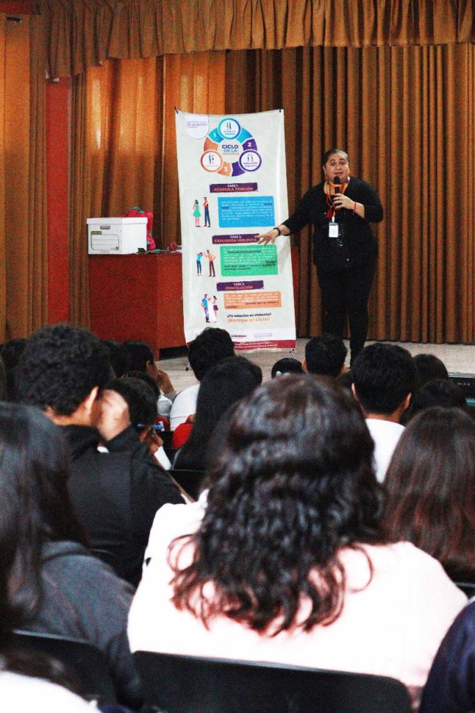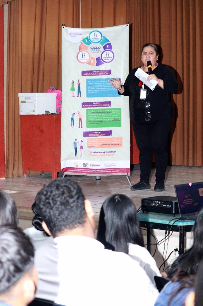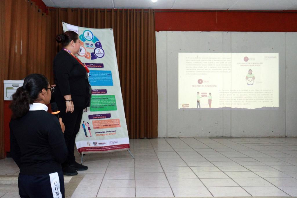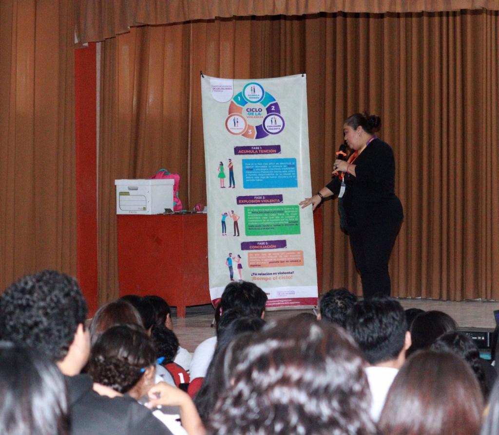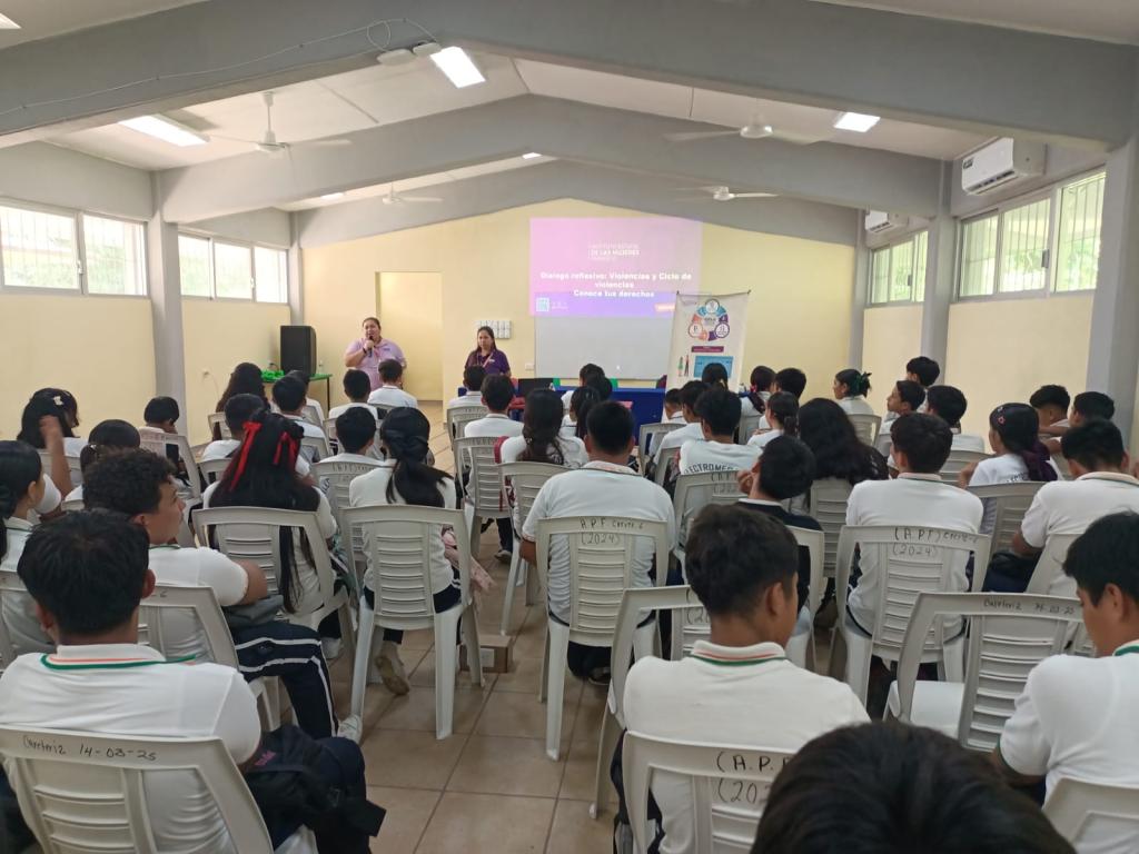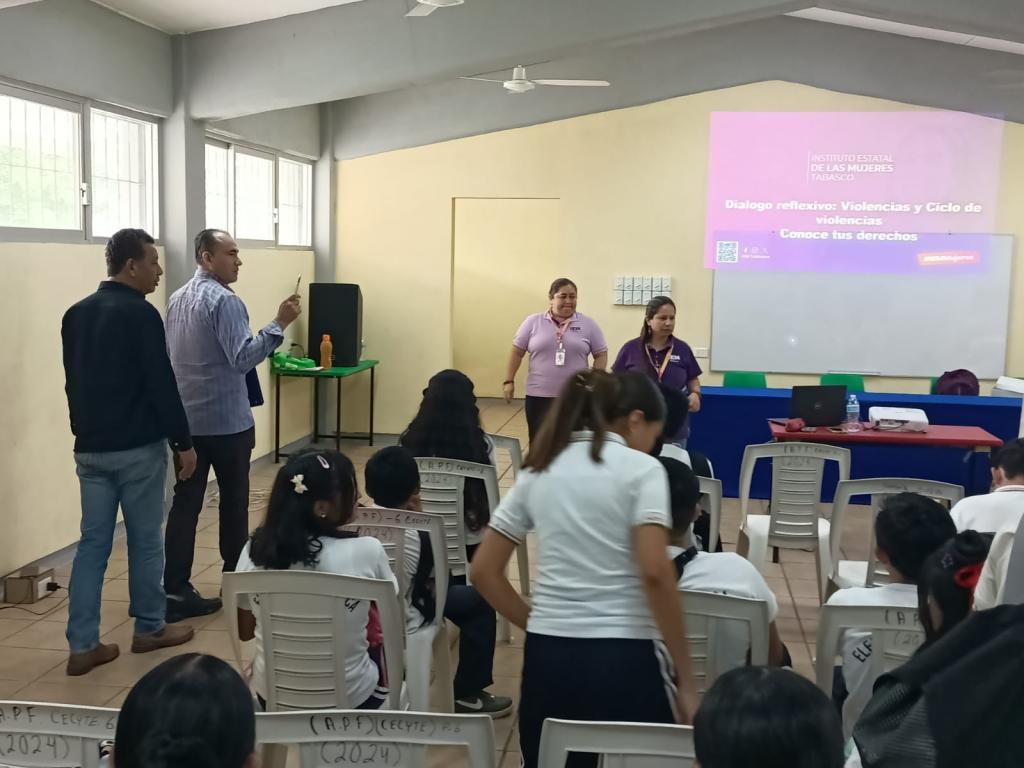El Instituto Estatal de las Mujeres de Tabasco a través del Departamento de Capacitación de la Subdirección de Psicología y Salud Integral realizo la capacitación “Reconocimiento de Violencias y ciclo de violencias”, la cual estuvo dirigida a estudiantes del CECyTE Plantel No. 6 del poblado Ignacio Gutiérrez Gómez del municipio de Cárdenas, tuvo por objetivo promover el reconocimiento oportuno de prácticas que puedan vulnerar sus derechos, a partir de ejercicios pedagógicos que permitieron identificar las diversas formas de violencias y el ciclo de violencia,s para fomentar espacios seguros y libres de violencias.