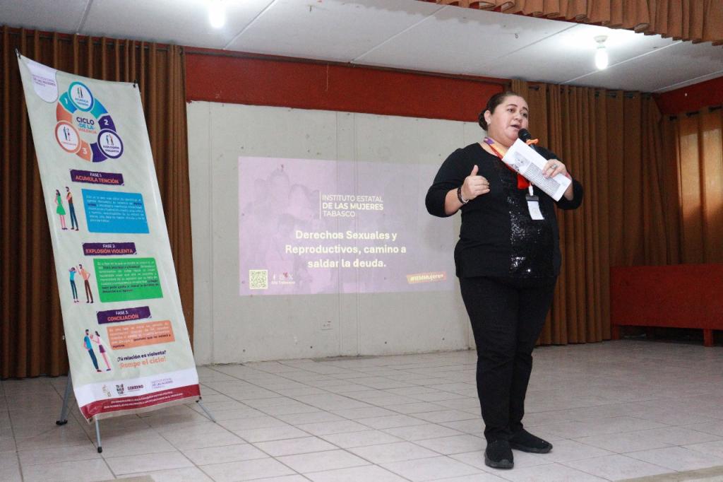 El Instituto Estatal de las Mujeres de Tabasco a través del Departamento de Capacitación de la Subdirección de Psicología y Salud Integral realizo la capacitación “Derechos Sexuales y Reproductivos: camino a saldar la deuda”, la cual estuvo dirigida a estudiantes del CECyTE Plantel No. 4 del municipio de Comalcalco, la tuvo por objetivo reconocer y visibilizar los derechos sexuales y reproductivos como los más humanos y eliminar mitos que existan alrededor de estos para promover acciones que permitan el disfrute pleno de estos derechos.