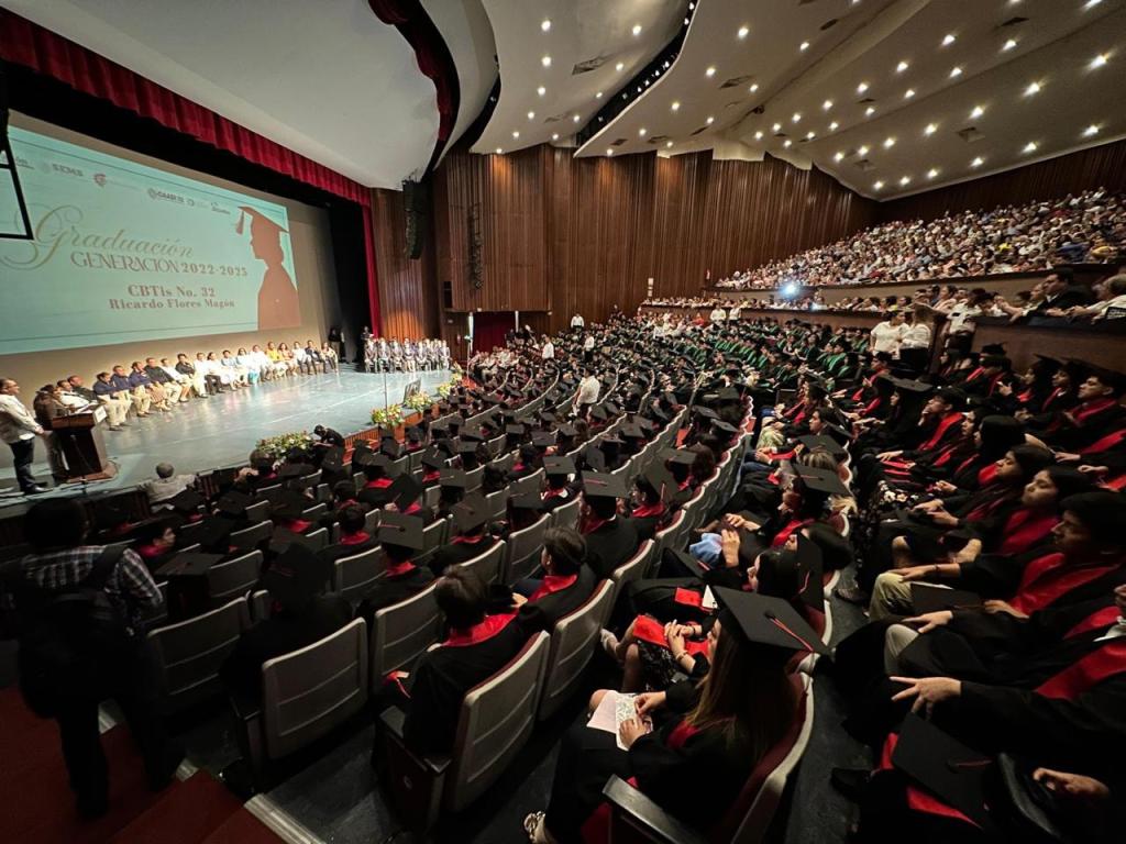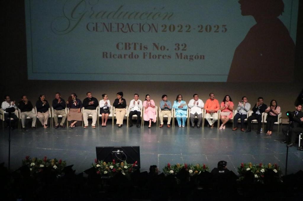 “No hay desarrollo con justicia si no garantizamos oportunidades reales para que nuestras y nuestros jóvenes se preparen, se especialicen y salgan adelante con oportunidad”, afirmó la secretaria de Educación, Patricia Iparrea Sánchez, al encabezar la ceremonia de graduación de la generación 2022-2025 del Centro de Bachillerato Tecnológico, Industrial y de Servicios (CBTIS) número 32, con sede en Villahermosa.