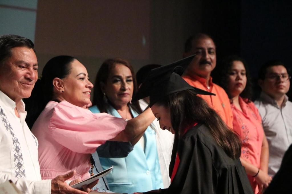 En el Teatro del Estado “Esperanza Iris”, la titular de la SETAB entregó certificados a las y los 856 egresados y egresadas de las especialidades en Contabilidad, Laboratorista Clínico y Mantenimiento Industrial.
