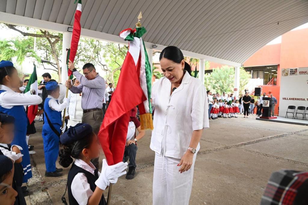 El acto protocolario incluyó la toma de protesta de ley, donde la responsable de la política educativa en Tabasco entregó las banderas a los cuerpos de escolta, quienes juraron defender el símbolo nacional con respeto y dignidad.