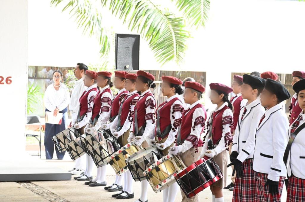 En presencia de la directora de Educación Inicial y Preescolar, Yadi Noemí Hernández Peralta, y del director de Educación Secundaria, Juan Carlos Espadas Olán, la secretaria de Educación manifestó que “la formación cívica no se limita a actos protocolarios, sino que se construye todos los días en el aula, en la convivencia escolar y en el ejemplo de nuestras maestras y maestros”.