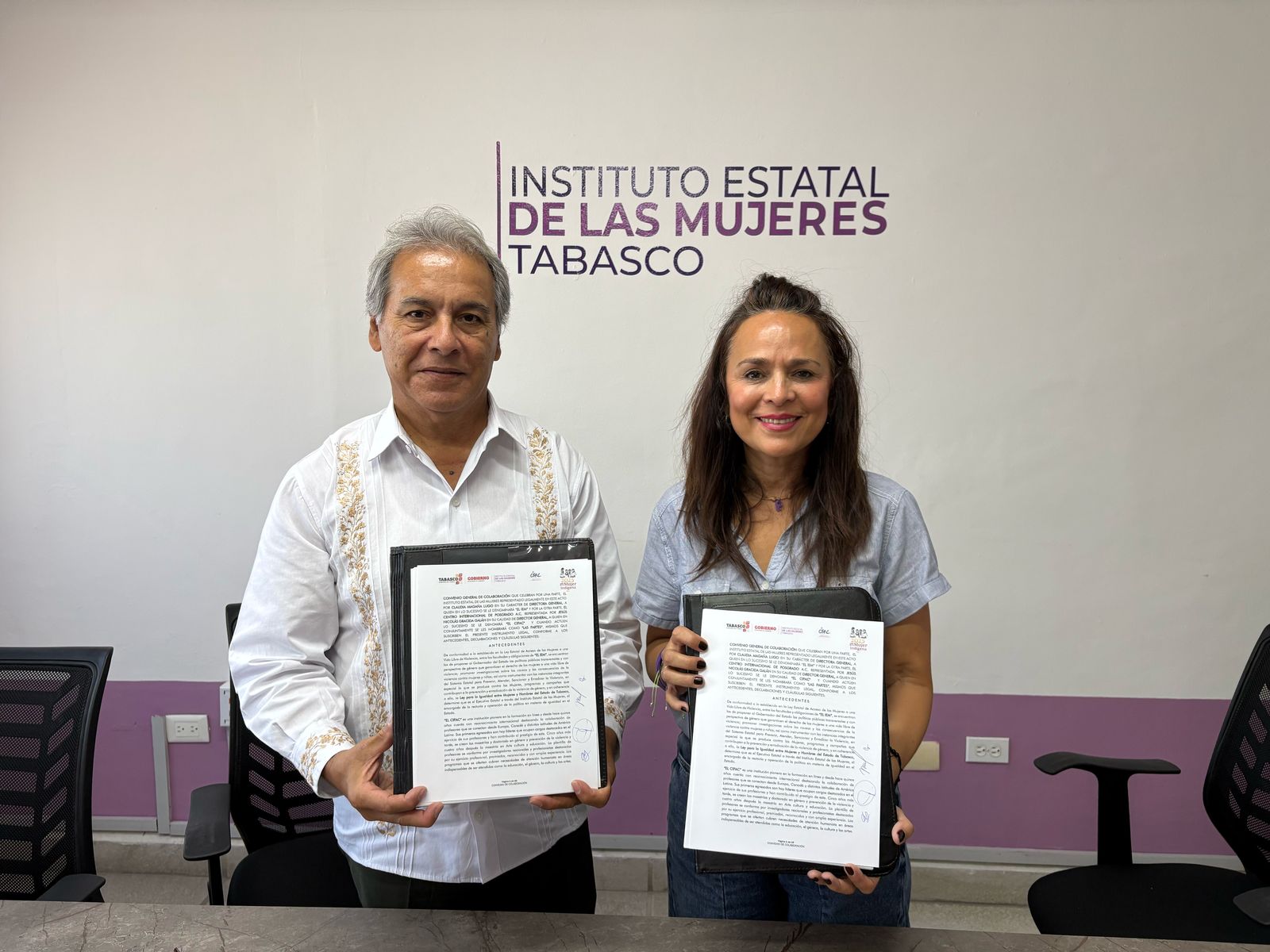 Se llevó a cabo la Firma de Convenio General de Colaboración entre el Centro Internacional de Posgrado, A.C. (CIPAC) y el IEM, donde se establecen lazos de colaboración para generar acciones que permitan promover la perspectiva de género, la inclusión y la igualdad sustantiva, con la finalidad de profesionalizar al personal del Instituto con los programas de estudio. Acudió el Dr. Jesús Nicolás Gracida Galán, Director General del CIPAC y la Mtra. Claudia Magaña Lugo, Directora General del IEM.