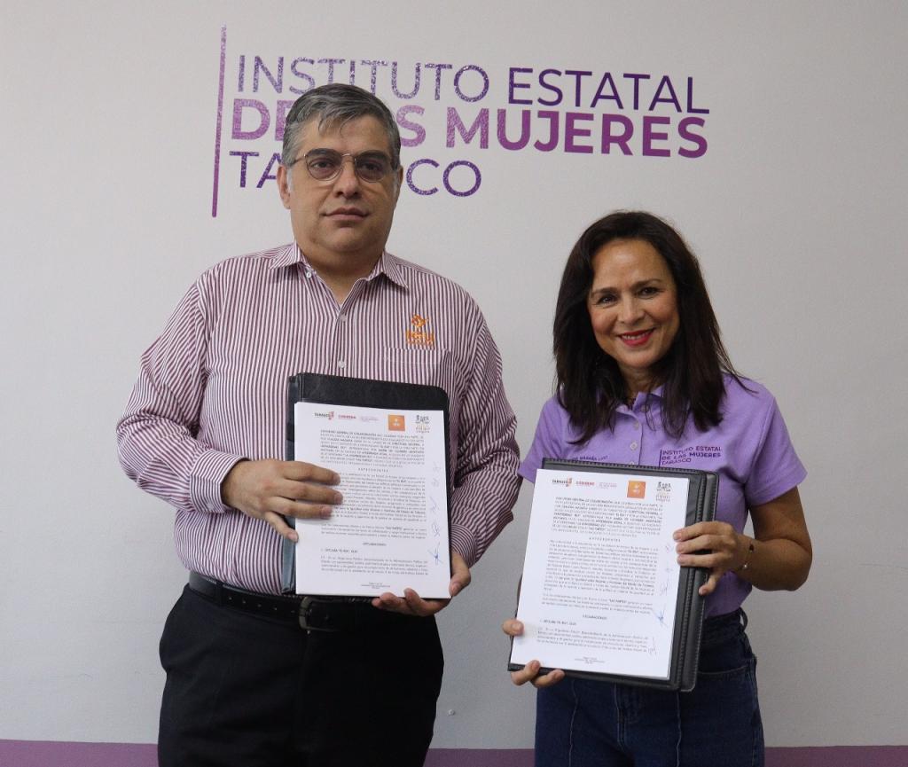 El día de hoy se llevó a cabo la firma del convenio de colaboración con la Secretaría de Educación Tabasco, con este acto realizado por las titulares de ambas instituciones la Mtra. Claudia Magaña Lugo, Directora General del IEM y la Mtra. Patricia Iparrea Sánchez, Secretaria de la SETAB. Se inició esta colaboración institucional para realizar acciones conjuntas a favor de las niñas, niños y adolescentes en el Estado, así como la próxima implementación del Proyecto Código QR para Escuelas Libres de Violencias. 01 DE ABRIL En un acto significativo para el desarrollo del bienestar integral de todas las mujeres, la Mtra. Claudia Magaña Lugo, Directora General del IEM, y la Mtra. María Esther Zapata Zapata, Directora General del Servicio Nacional de Empleo Tabasco llevaron a cabo la Firma de Convenio entre ambas instituciones. Con el objetivo de establecer las bases de cooperación para la construcción de una sociedad igualitaria mediante acciones necesarias que propicien la prevención y atención de las violencias contra las mujeres. Promuevan la perspectiva de género, inclusión, la igualdad sustantiva y de oportunidades entre mujeres y hombres en el sector laboral; y de esta manera toda mujer que acuda al IEM, a solicitar algún servicio tenga oportunidades de trabajo de empleo para desarrollarse económicamente.
