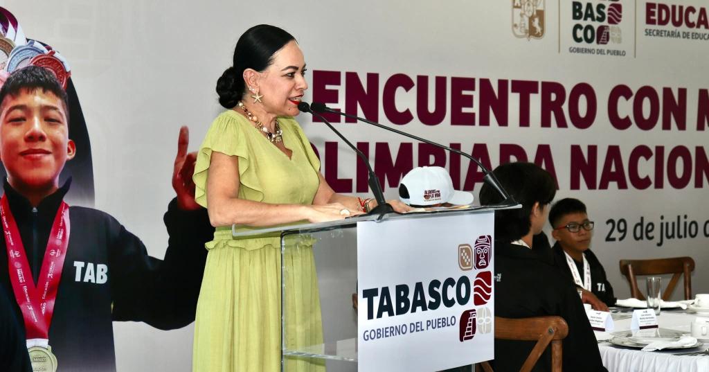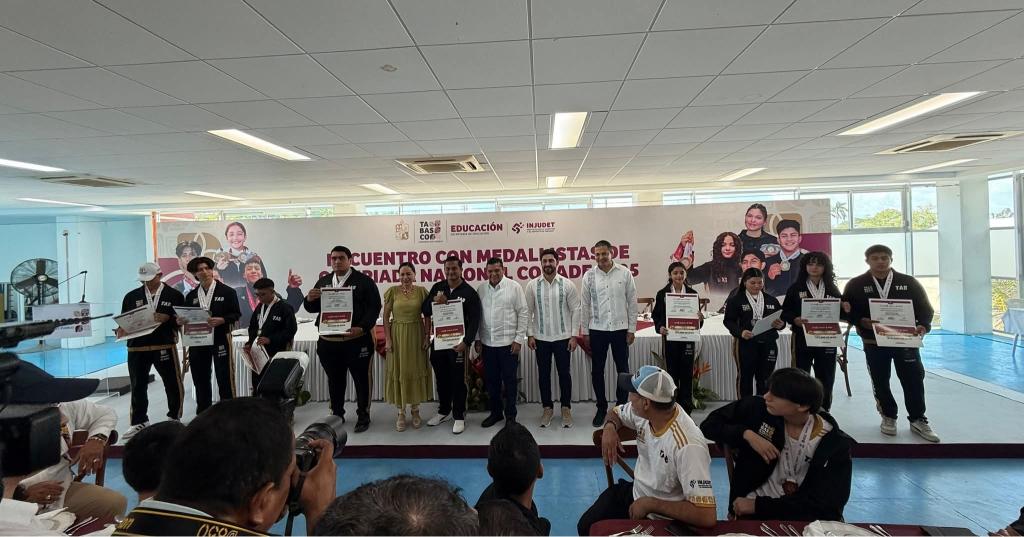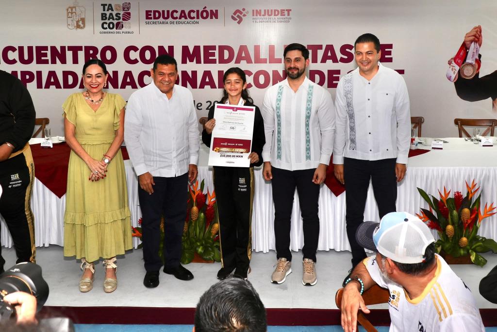 "Hoy nos reúne el orgullo de reconocer a nuestras y a nuestros medallistas de la Olimpiada Nacional Conade 2025, quienes con disciplina y pasión han escrito una página dorada en la historia deportiva de Tabasco", aseguró May Rodríguez en compañía de la secretaria de Educación, Patricia Iparrea Sánchez, y el titular del Instituto Nacional de la Juventud y el Deporte de Tabasco (Injudet), Gabriel Isaac Ruiz Pérez.