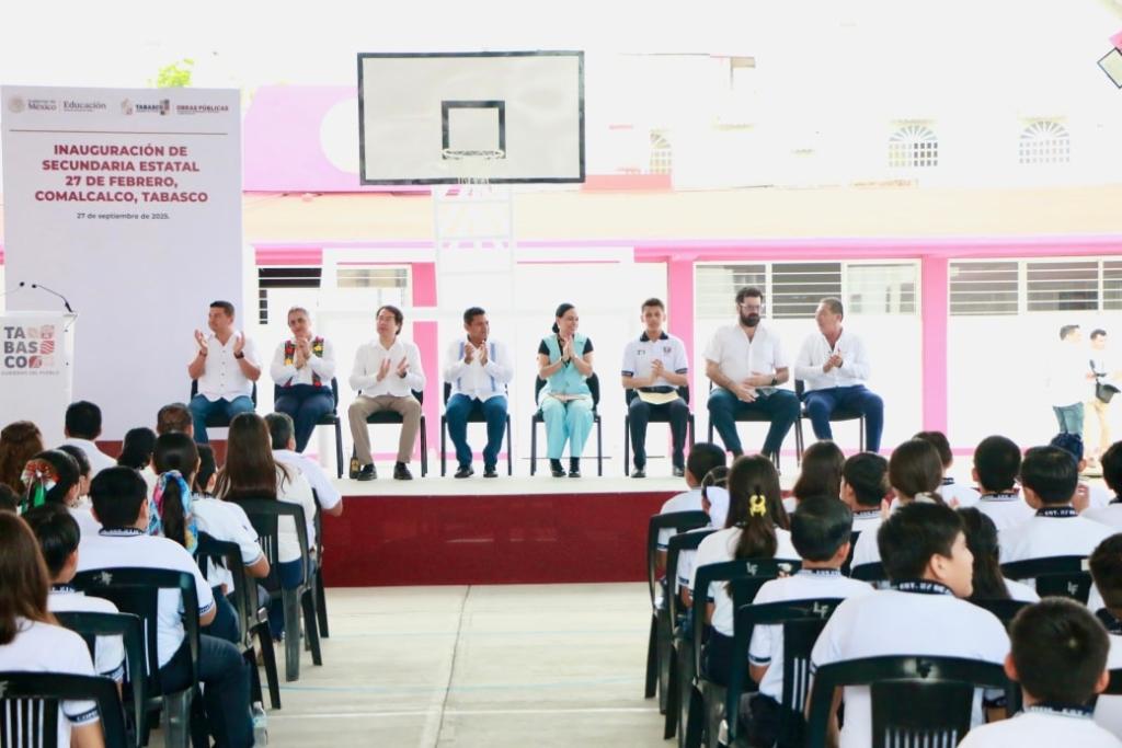 Asimismo, se inauguró la Secundaria Estatal 27 de Febrero, con infraestructura completa que incluye 12 aulas, talleres, laboratorios, auditorio, servicios sanitarios y centro de cómputo, asegurando un entorno educativo integral, moderno y seguro. El Gobernador afirmó que “esta secundaria no es solo un edificio; es un espacio donde se forjarán sueños, aprendizajes y esperanzas. La educación de calidad es un compromiso del Gobierno del Pueblo”.