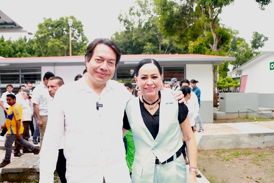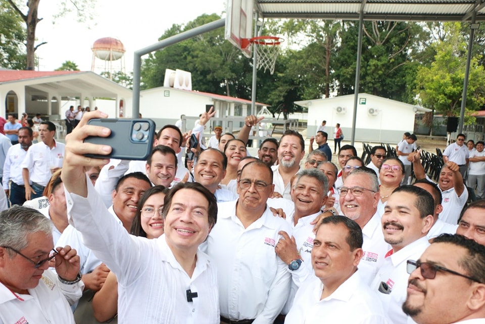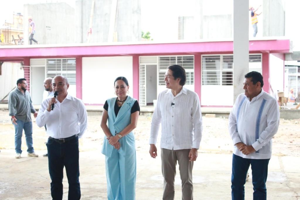 La jornada inició con la supervisión de obras en la Primaria Tomás Garrido Canabal, ubicada en el Ejido Dos Montes, municipio de Centro, donde se verificaron los avances en la construcción de aulas y servicios sanitarios, beneficiando a 228 alumnas, alumnos y docentes. Durante el recorrido, Mario Delgado anunció que, a partir de 2026 y por instrucciones de la presidenta de México, todas y todos los estudiantes de escuelas primarias públicas contarán con la Beca Universal Rita Cetina, medida que beneficiará a más de 12 millones de niñas y niños en el país y permitirá alcanzar a más de 21 millones de beneficiarios de las Becas para el Bienestar.