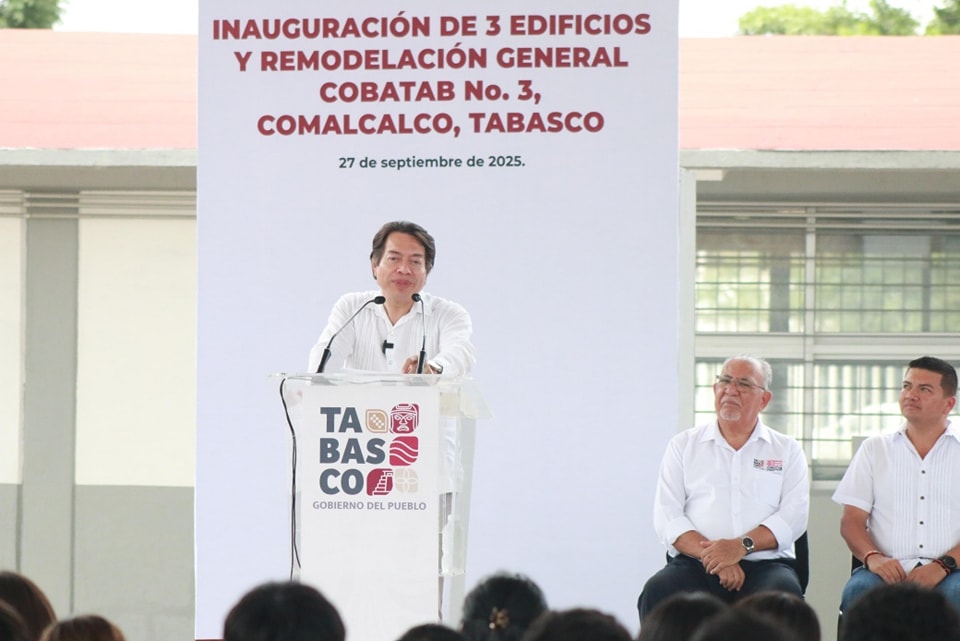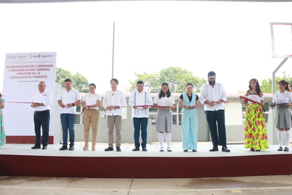 En Comalcalco, se inauguraron tres nuevos edificios y la remodelación integral del COBATAB Plantel 3, donde Mario Delgado anunció la implementación del Bachillerato Nacional, un modelo que unifica criterios académicos a nivel nacional y garantiza formación integral y equitativa para todos los estudiantes. El Gobernador subrayó que “cuando mejoramos las condiciones de nuestras escuelas, también fortalecemos la educación de nuestras juventudes y aseguramos el progreso de Tabasco”.