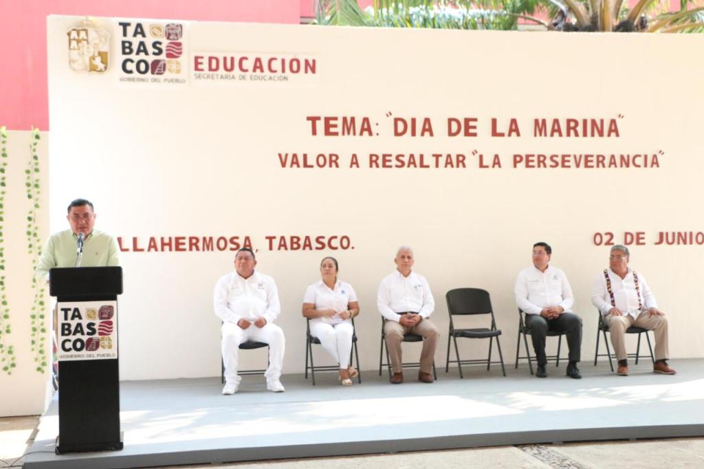 Como parte de las acciones encaminadas a promover valores cívicos y patrióticos, la Secretaría de Educación del Estado de Tabasco (SETAB), a través de la Dirección de Educación Física, llevó a cabo el acto cívico correspondiente al mes de junio, en el que se resaltó el valor de la perseverancia, y el Día de la Marina como fecha relevante del mes, evento que fue encabezado, en representación de la secretaria de Educación, Patricia Iparrea Sánchez, por el coordinador general de Planeación, Evaluación e Infraestructura, Gonzalo Mario Martínez Gómez.