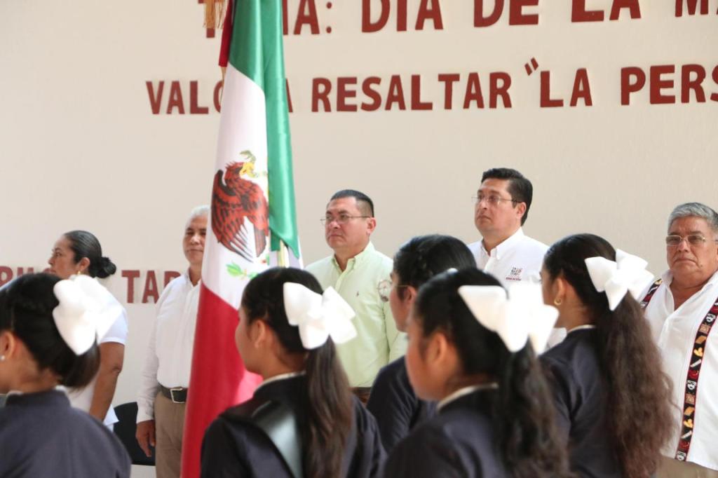 Estuvieron también en este acto cívico, el director general de Educación Básica, Macario de la Cruz Pérez, y el director de Educación Secundaria, Juan Carlos Espadas Olán.