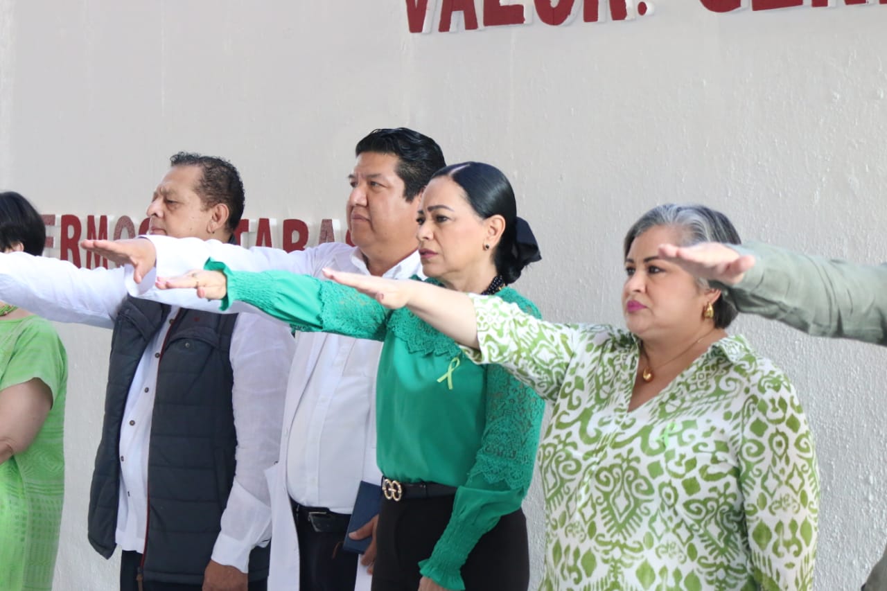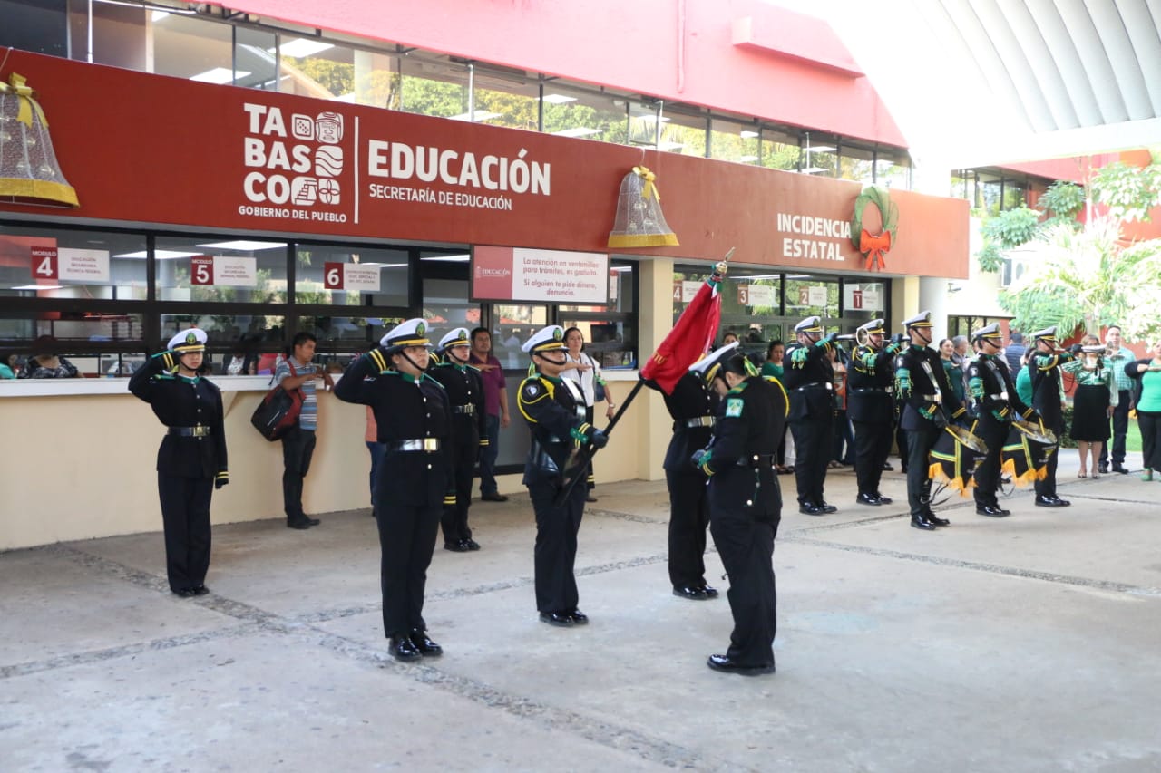 Con un llamado a reflexionar sobre la trascendencia del derecho a la educación y el impacto que tiene esta en la construcción de una sociedad más justa, equitativa y solidaria, la secretaria de Educación, Patricia Iparrea Sánchez, encabezó el acto cívico que se lleva a cabo cada mes en las instalaciones de esta dependencia, en donde docentes y personal de apoyo y asistencia a la educación, junto a alumnas y alumnos rinden honores al Lábaro Patrio.