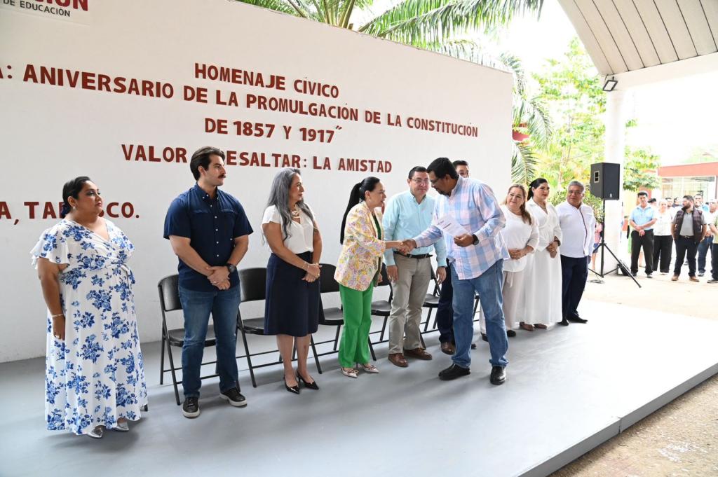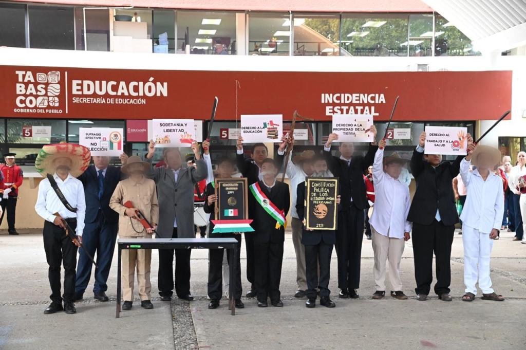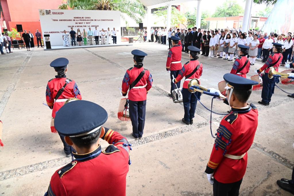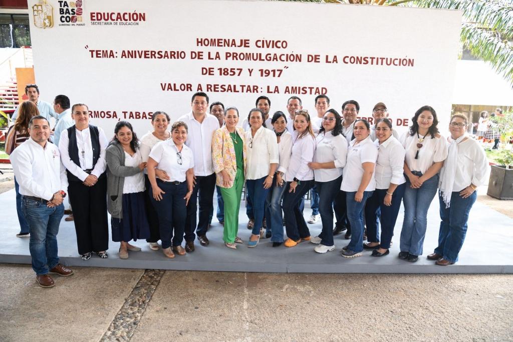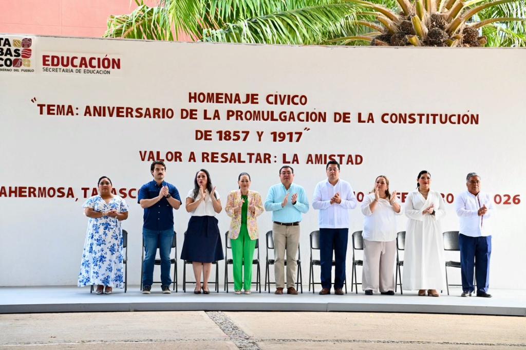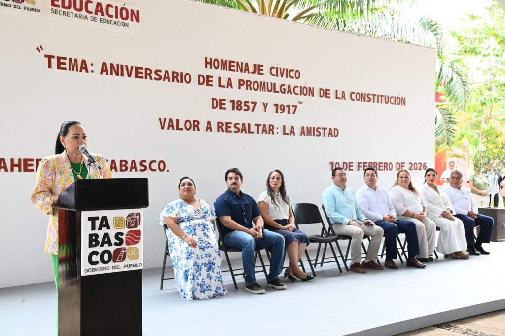 En un marco de respeto a los símbolos patrios y de fomento a la convivencia armónica, la secretaria de Educación del Estado de Tabasco (SETAB), Patricia Iparrea Sánchez, encabezó el acto cívico correspondiente al mes de febrero, en el que se conmemoró el aniversario de la promulgación de las Constituciones de 1857 y 1917.