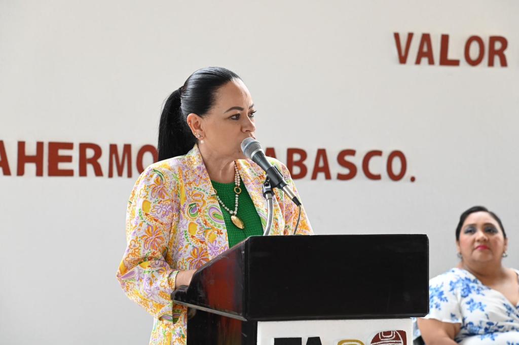 En presencia del director de Educación Secundaria, Juan Carlos Espadas Olán, la secretaria de Educación destacó que este acto cívico se inscribe en la visión del Gobierno del Pueblo que encabeza el mandatario Javier May Rodríguez, “quien ha sostenido que la educación pública no solo transmite conocimientos, sino que forma ciudadanía, fortalece el tejido social y construye comunidad desde los valores”.