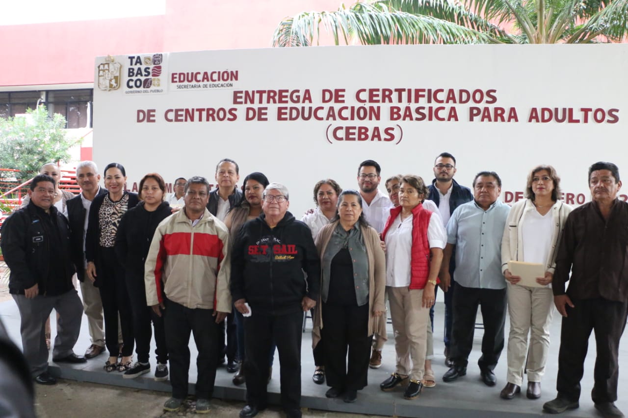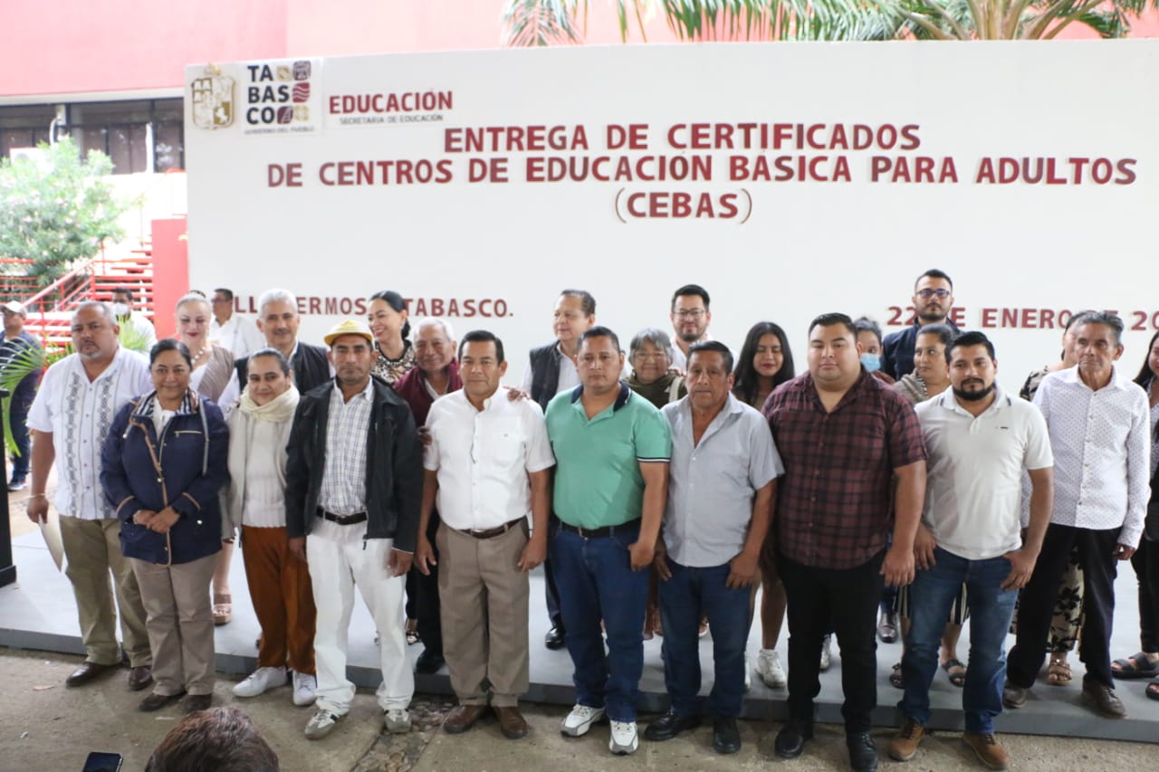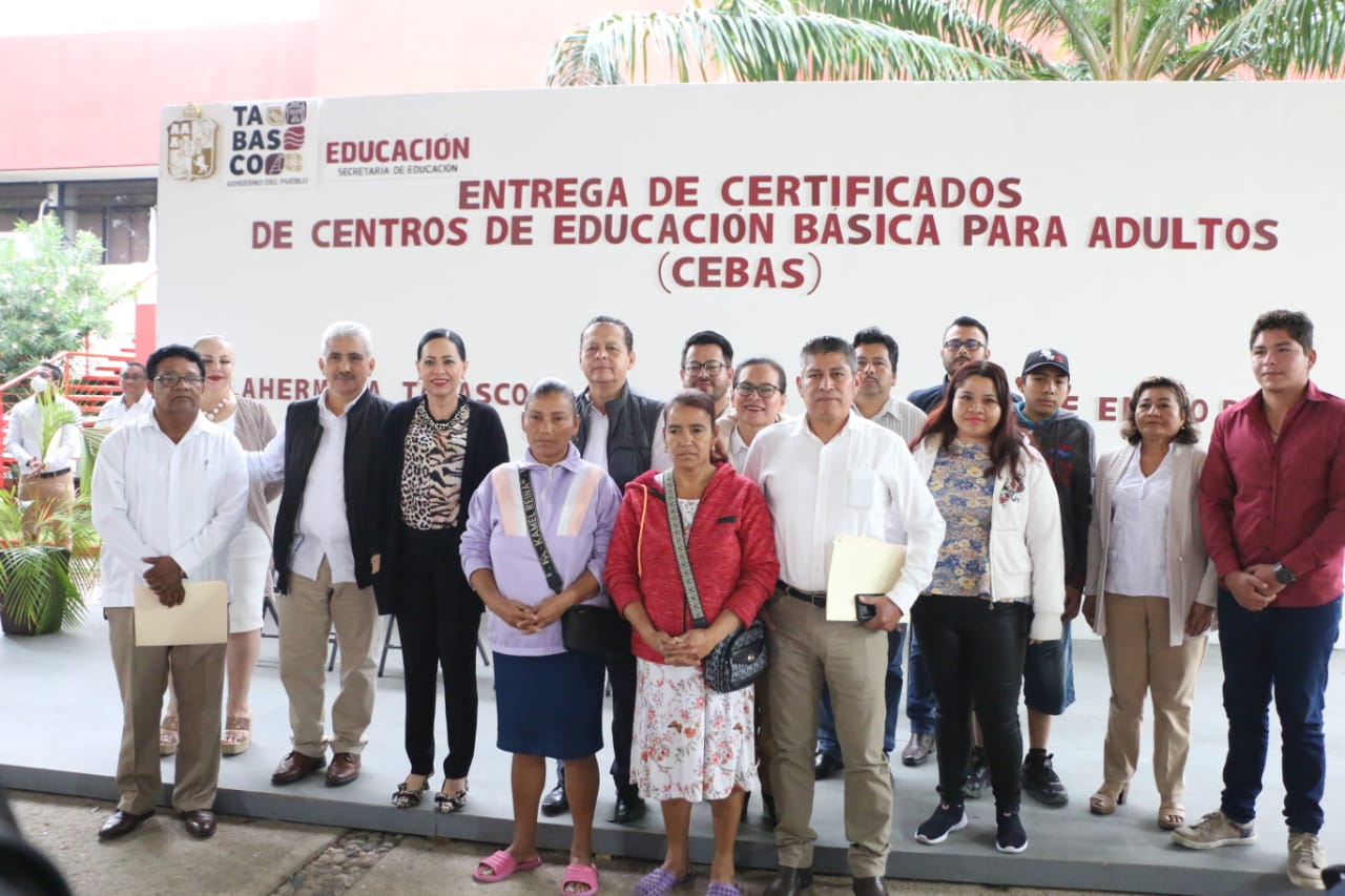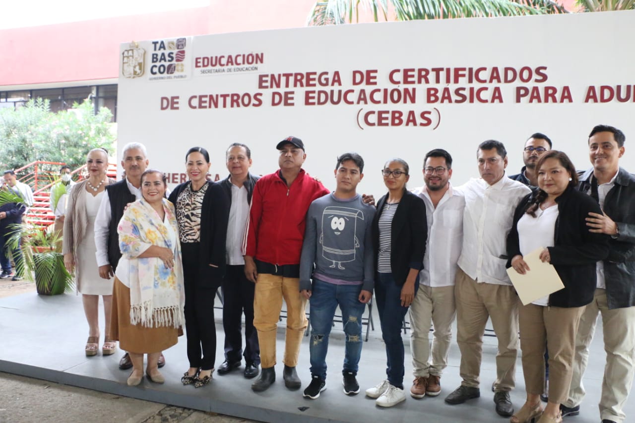 La Dirección General de Centros de Educación Básica para Adultos (CEBAS)de la Secretaría de Educación del Estado de Tabasco (SETAB)llevó a cabo la entrega de 119 certificados a jóvenes y adultos que concluyeron sus estudios de primaria y secundaria de las zonas 1 y 2 de esta modalidad de servicio educativo.