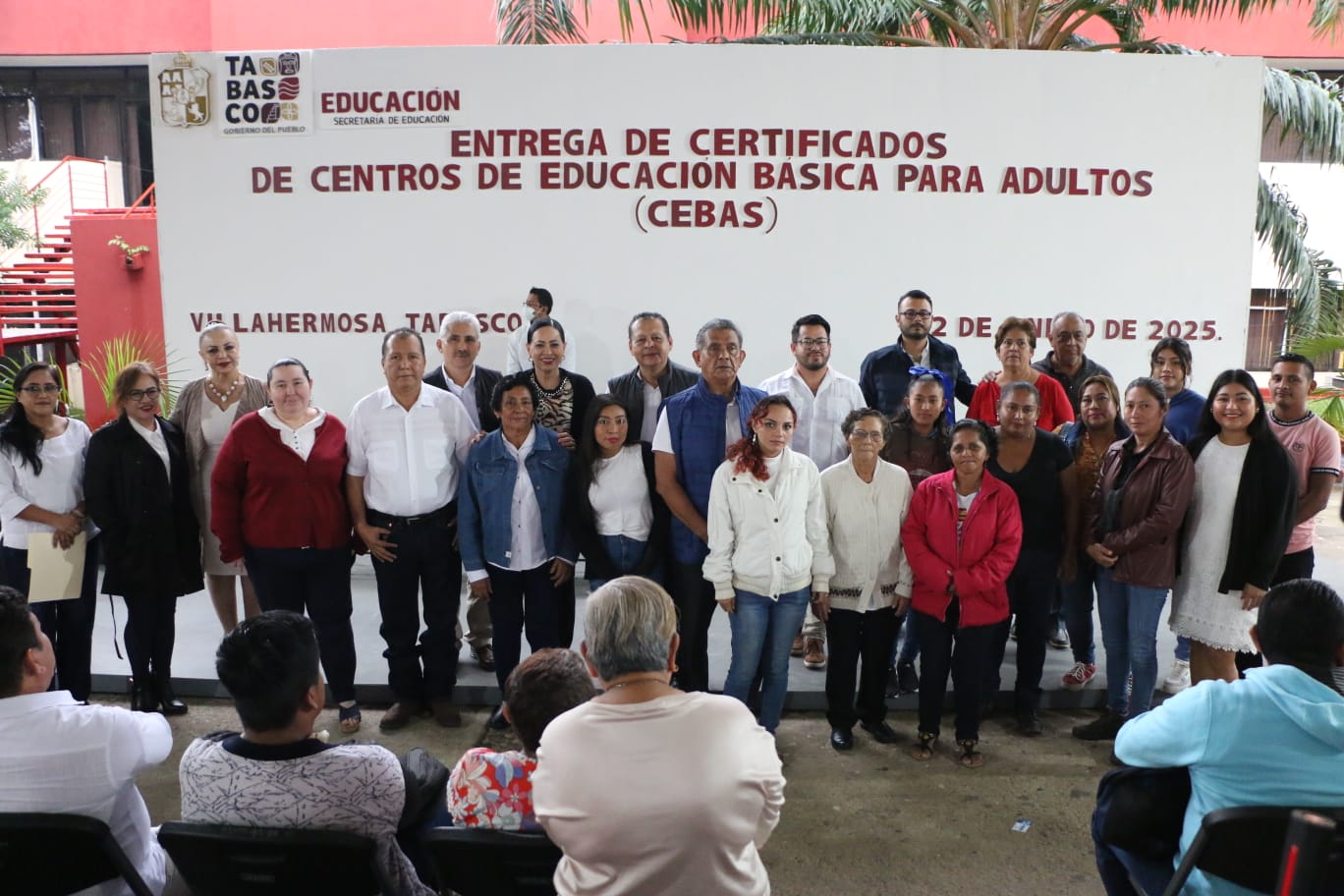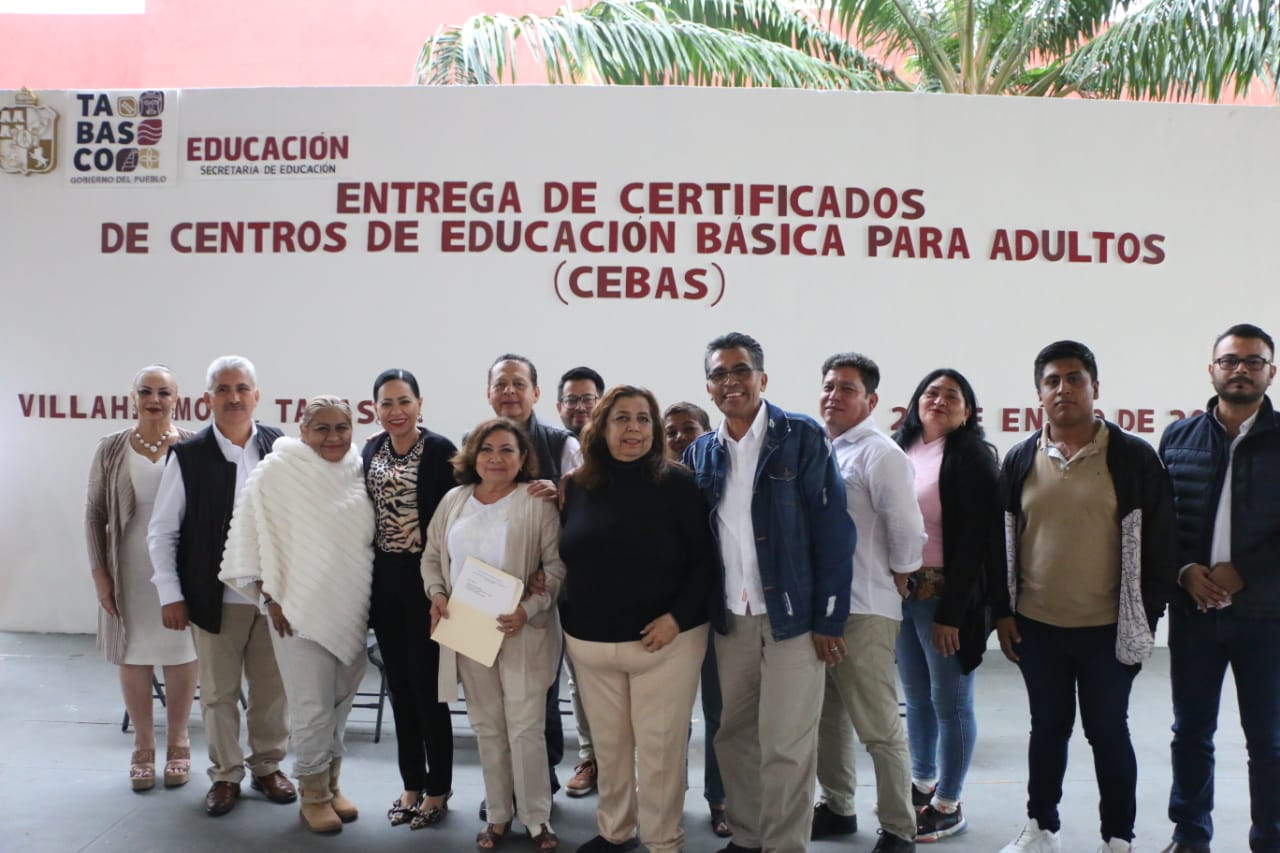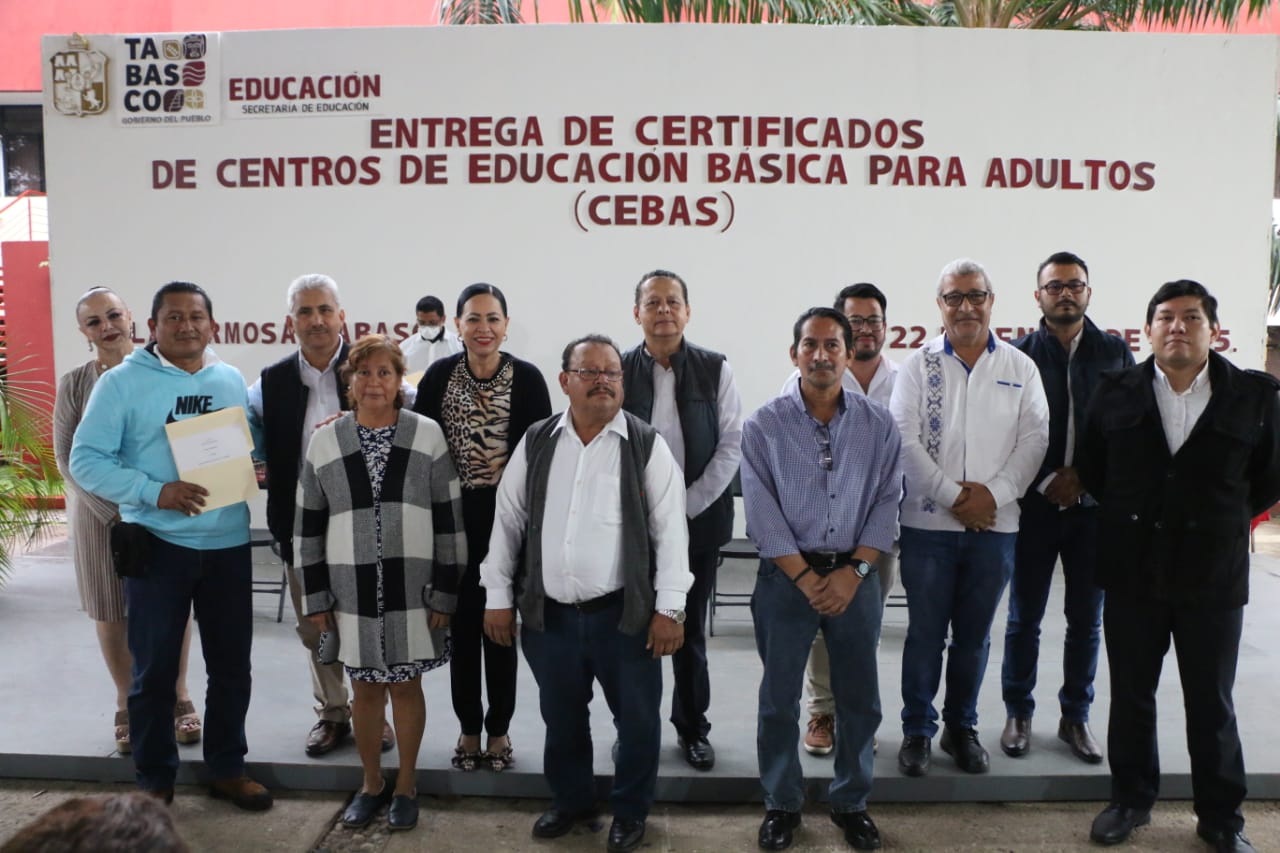 La Dirección General de Centros de Educación Básica para Adultos (CEBAS)de la Secretaría de Educación del Estado de Tabasco (SETAB)llevó a cabo la entrega de 119 certificados a jóvenes y adultos que concluyeron sus estudios de primaria y secundaria de las zonas 1 y 2 de esta modalidad de servicio educativo.