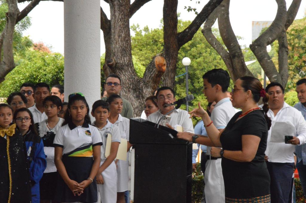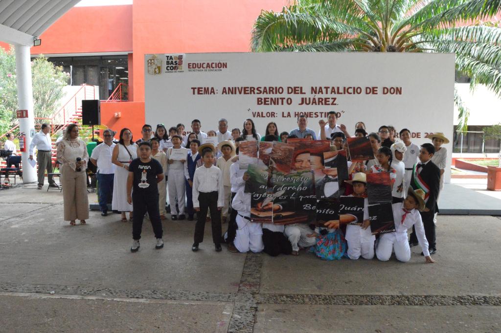 En representación de la directora de Educación Primaria, Lorena Isabel Torres López, la secretaria técnica, Diana Silvia Ginés López, informó que durante todo el mes de marzo se promoverá la Honestidad como eje rector en los planteles escolares, además que destacó la relevancia histórica de Benito Juárez García, previo a la conmemoración del 220 aniversario de su natalicio.