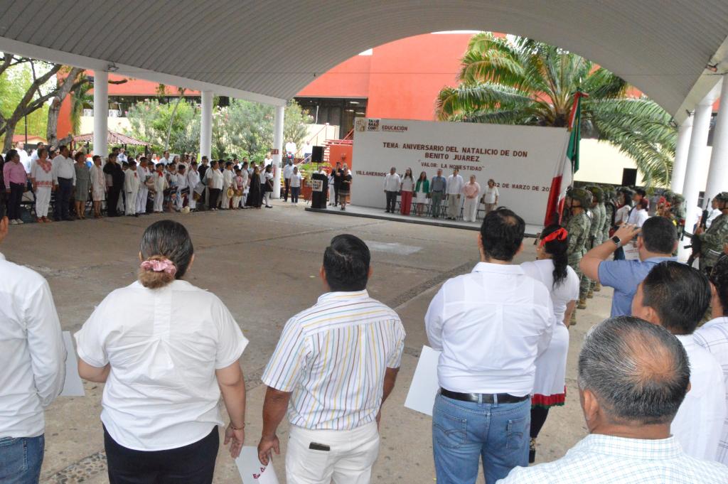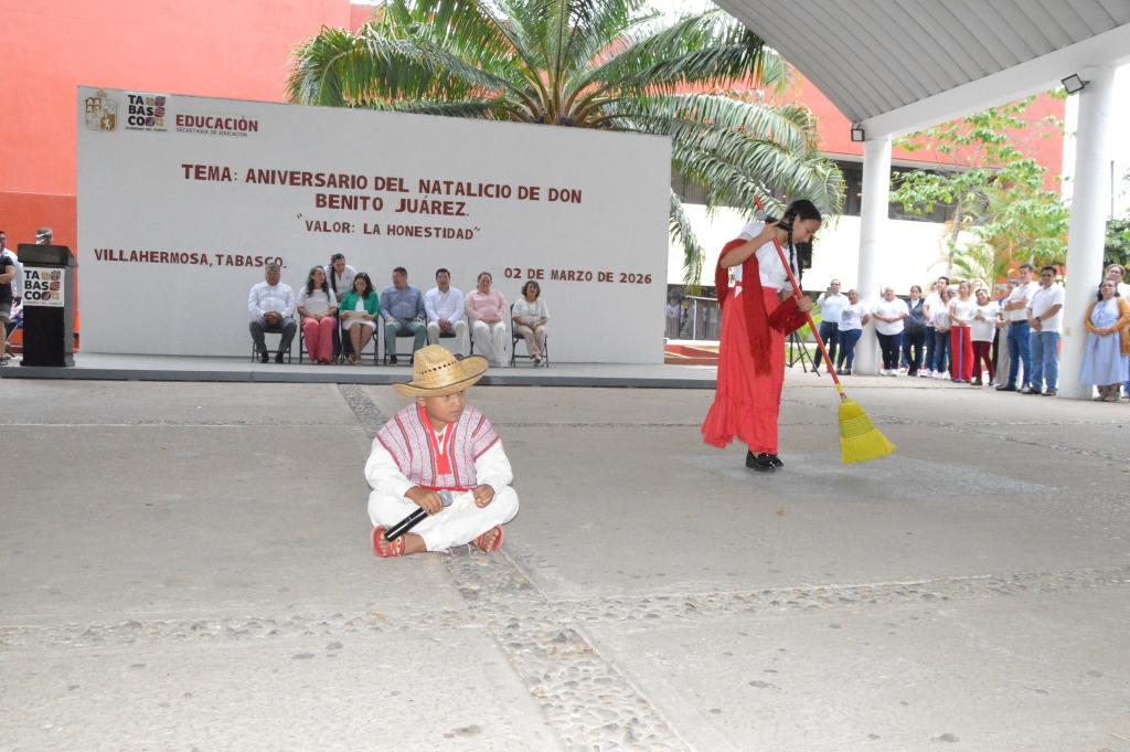 En ese sentido, recalcó que al celebrar a Juárez celebramos la legalidad y el respeto, por lo que llamó a la comunidad educativa a continuar trabajando para que la honestidad no sea solo un concepto en los libros, sino una práctica diaria en nuestras aulas y oficinas.