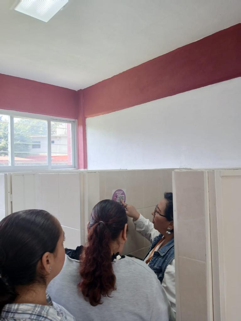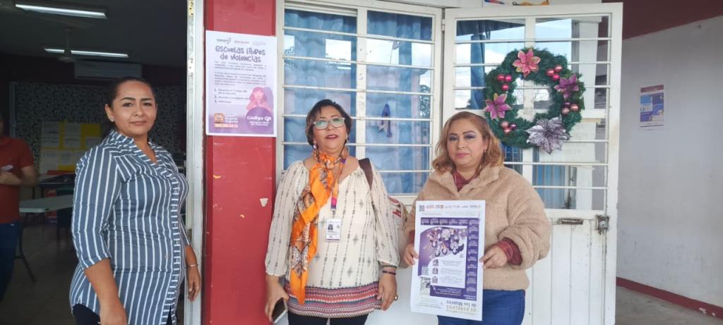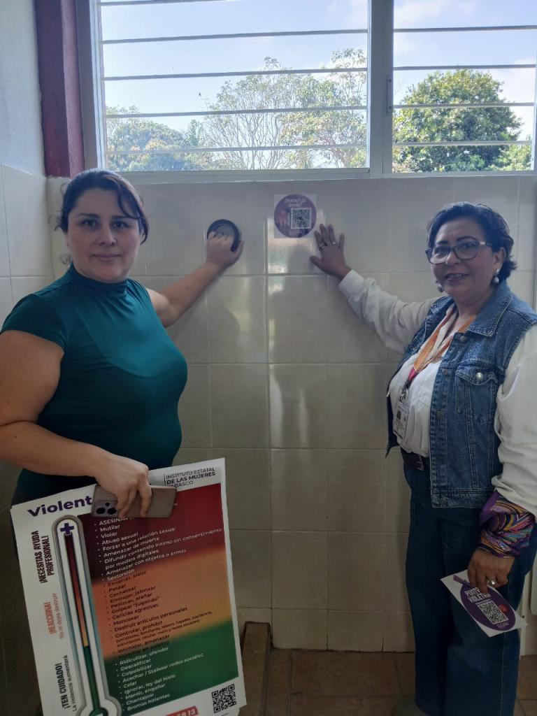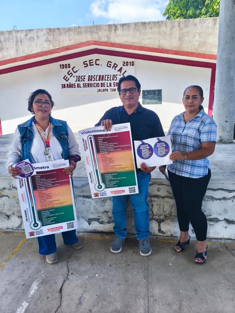 La Subdirección de Fortalecimiento Territorial, llevó a cabo la Colocación de “Puntos Violetas Informativos y Códigos QR: Escuelas Libres de Violencia”, el día 12 de febrero del 2026, en la Esc. Sec. General Estatal Dr. Regulo Torpey Andrade y en la Secundaria General Transferida José Vasconcelos del Municipio de Jalapa, Tabasco, con el objetivo de crear espacios seguros y de apoyo para mujeres que han sufrido o presenciado violencia machista, ofreciendo información, asesoramiento y en algunos casos, atención integral.
