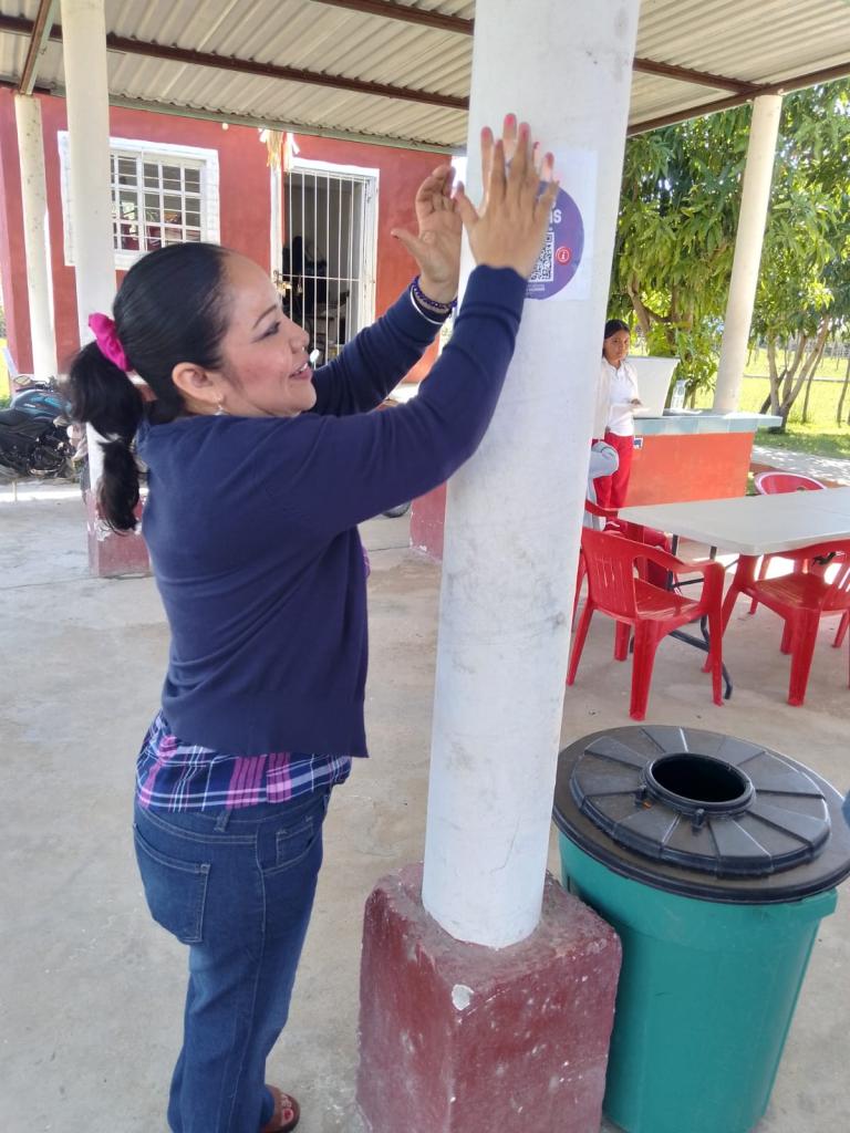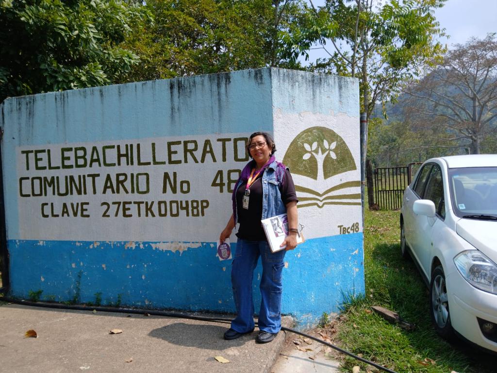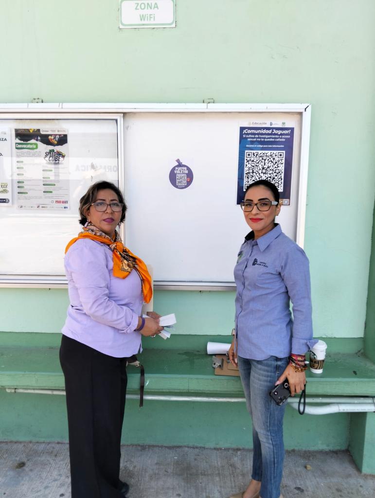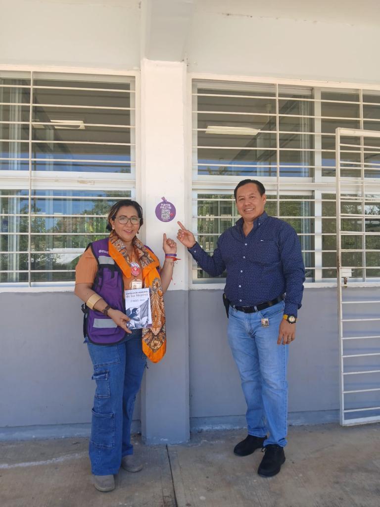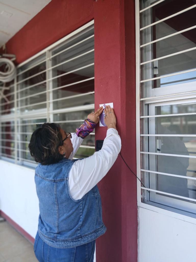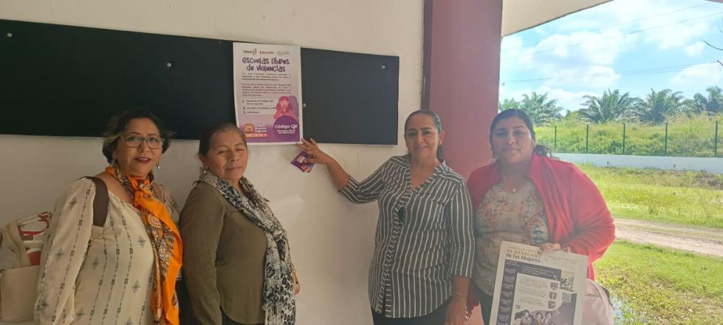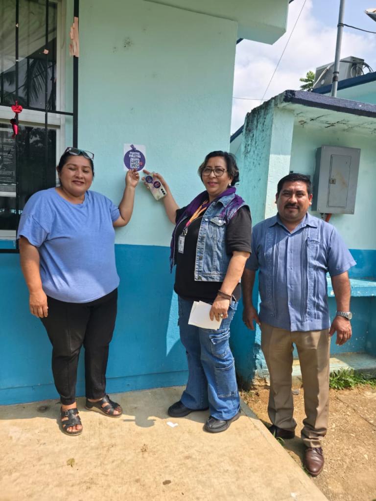 La Subdirección de Fortalecimiento Territorial, llevó a cabo la Colocación de “Puntos Violetas Informativos y Códigos QR: Escuelas Libres de Violencia”, el día 17 de febrero del 2026, en la Escuela Telesecundaria Gustavo Ovando Ríos y en el Telebachillerato Comunitario No.48 del Municipio de Tacotalpa, Tabasco, con el objetivo de crear espacios seguros y de apoyo para mujeres ofreciendo información, asesoramiento y en algunos casos, atención integral.