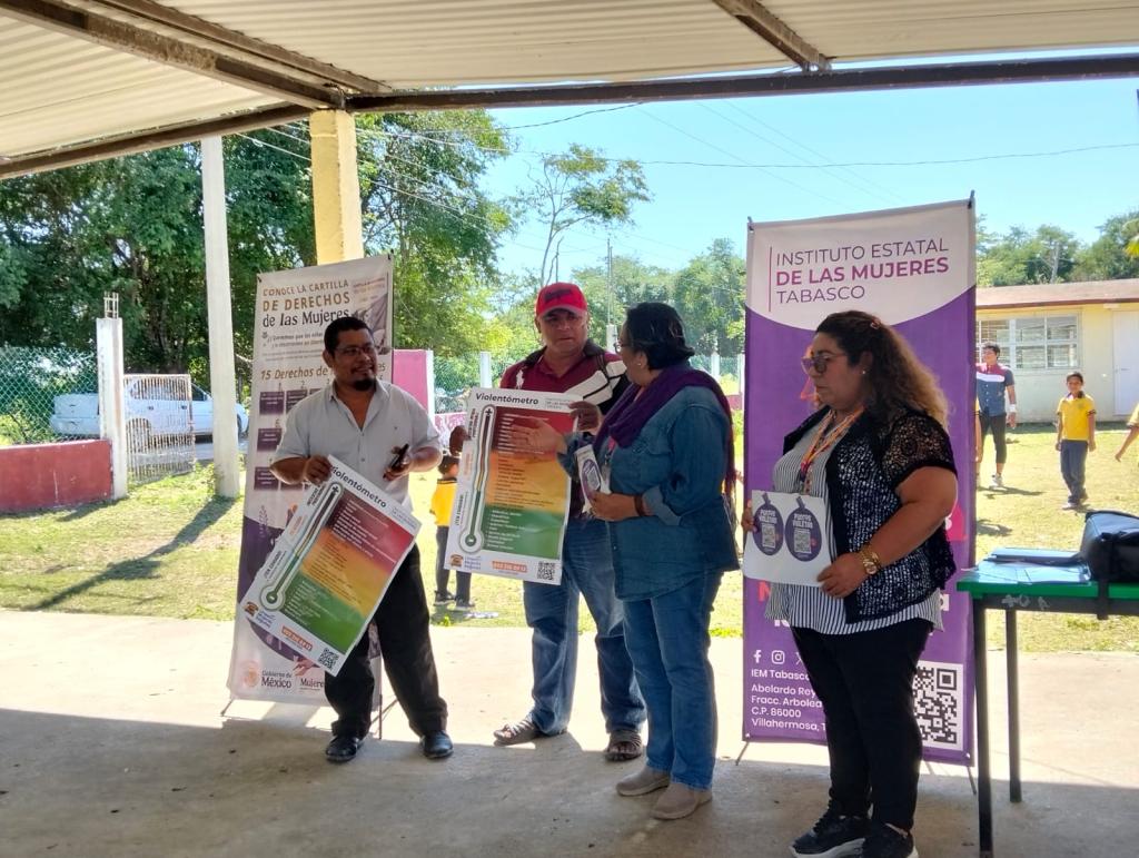 La Subdirección de Fortalecimiento Territorial, llevó a cabo la Colocación de “Puntos Violetas Informativos” , el día 11 de febrero del 2026, en el Cbtis No. 93 del Municipio de Cárdenas, Tabasco, con el objetivo de crear espacios seguros y de apoyo para mujeres que han sufrido o presenciado violencia machista, ofreciendo información, asesoramiento y en algunos casos, atención integral, así mismo se realizó la distribución de la cartilla de los Derechos Humanos de las Mujeres.