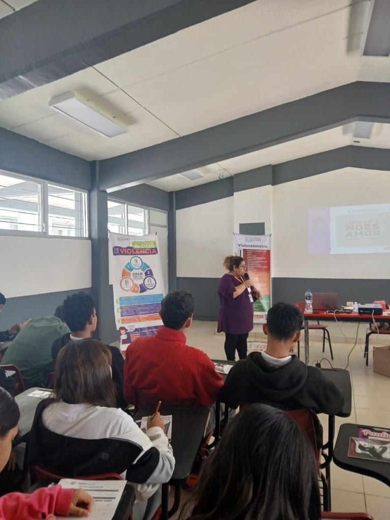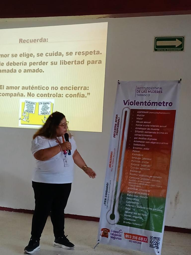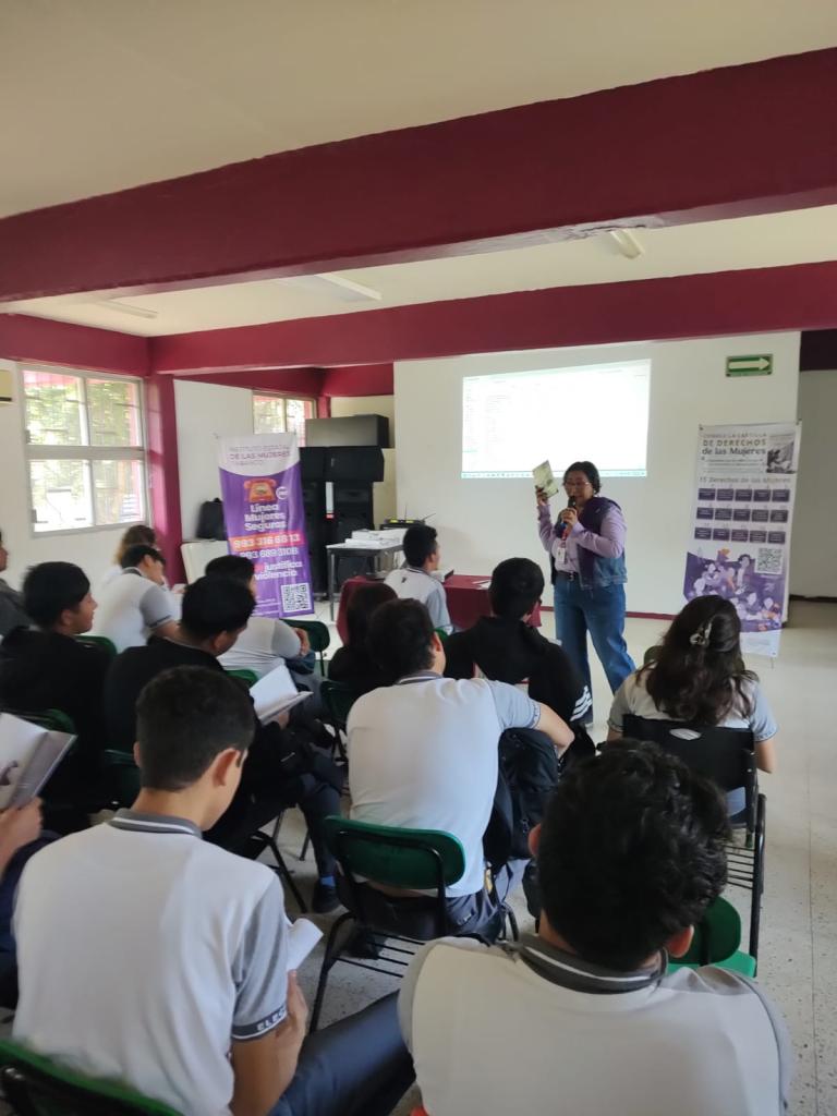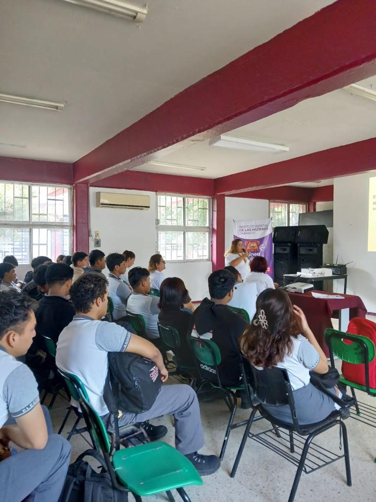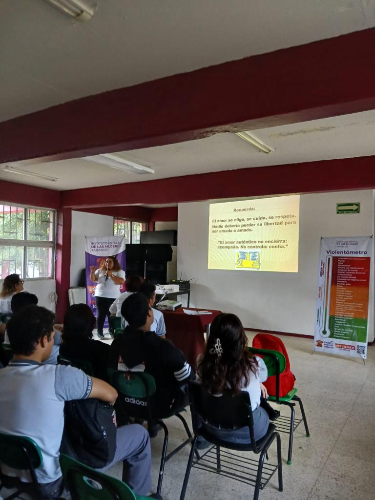 El Instituto Estatal de las Mujeres a través de la Subdirección de Fortalecimiento Territorial, llevo a cabo la: “Capacitación: Violencia en el Noviazgo”, el día 11 de febrero de 2026, dirigida a la comunidad estudiantil del Cbtis No. 93 del Municipio de Cárdenas, Tabasco, con el objetivo de sensibilizar a las y los estudiantes sobre las distintas formas de manifestación de las violencias en las relaciones de noviazgo, y fomentar relaciones afectivas sanas, basadas en el respeto, la igualdad y la comunicación asertiva.
