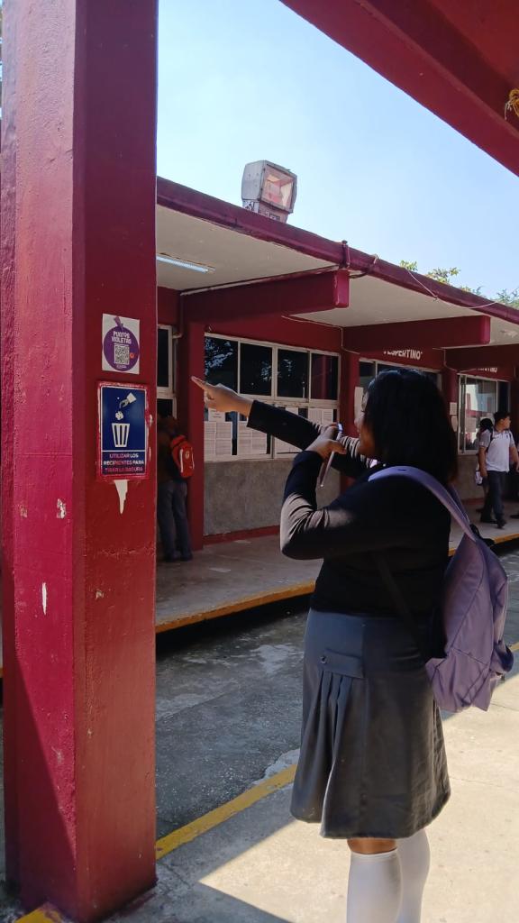 La Subdirección de Fortalecimiento Territorial, llevó a cabo la Colocación de “Puntos Violetas Informativos y Códigos QR: Escuelas Libres de Violencia”, el día 16 de febrero del 2026, en el Colegio de Bachilleres de Tabasco Plantel No. 52,Pomoca, Nacajuca, Tabasco, con el objetivo de crear espacios seguros y de apoyo para mujeres que han sufrido o presenciado violencia machista, ofreciendo información, asesoramiento y en algunos casos, atención integral.