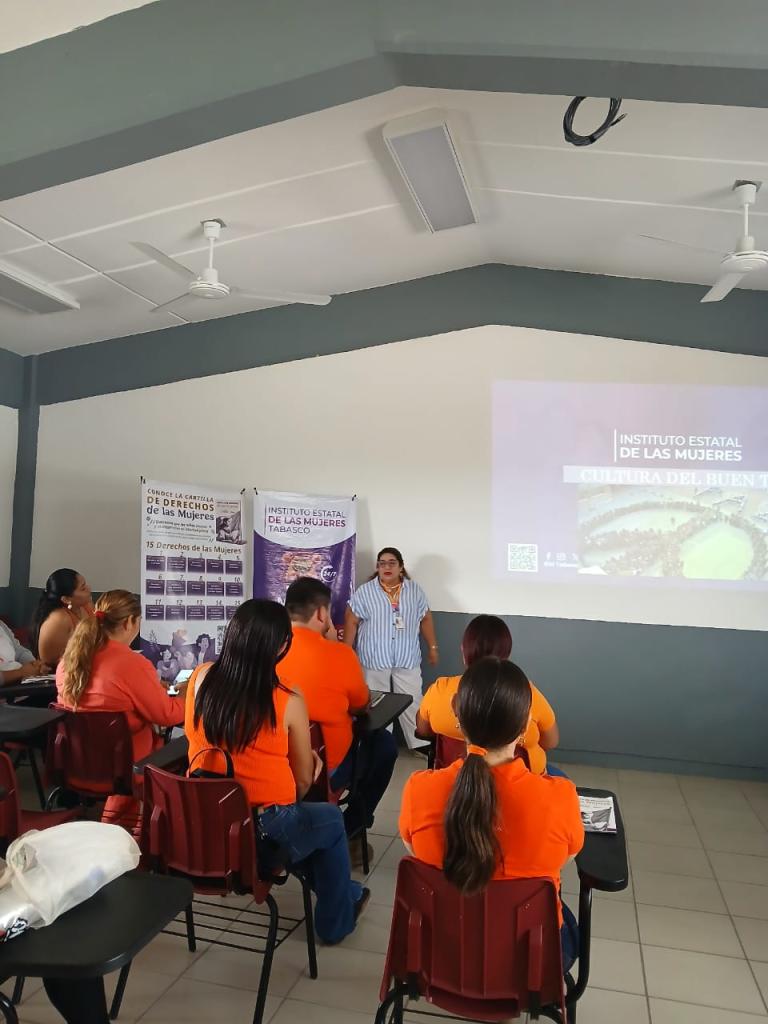 El Instituto Estatal de las Mujeres a través de la Subdirección de Fortalecimiento Territorial, llevo a cabo la Capacitación: “Violencia en el Noviazgo” el día 24 de febrero de 2026, dirigida a la comunidad estudiantil del Colegio de Bachilleres No.52, Pomoca, Nacajuca, tabasco, con el objetivo de sensibilizar a las y los estudiantes sobre las distintas formas de manifestación de las violencias en las relaciones de noviazgo y fomentar relaciones afectivas sanas, basadas en el respeto, la igualdad y la comunicación asertiva, Así mismo se realizó la distribución de la cartilla de los Derechos Humanos de las Mujeres.