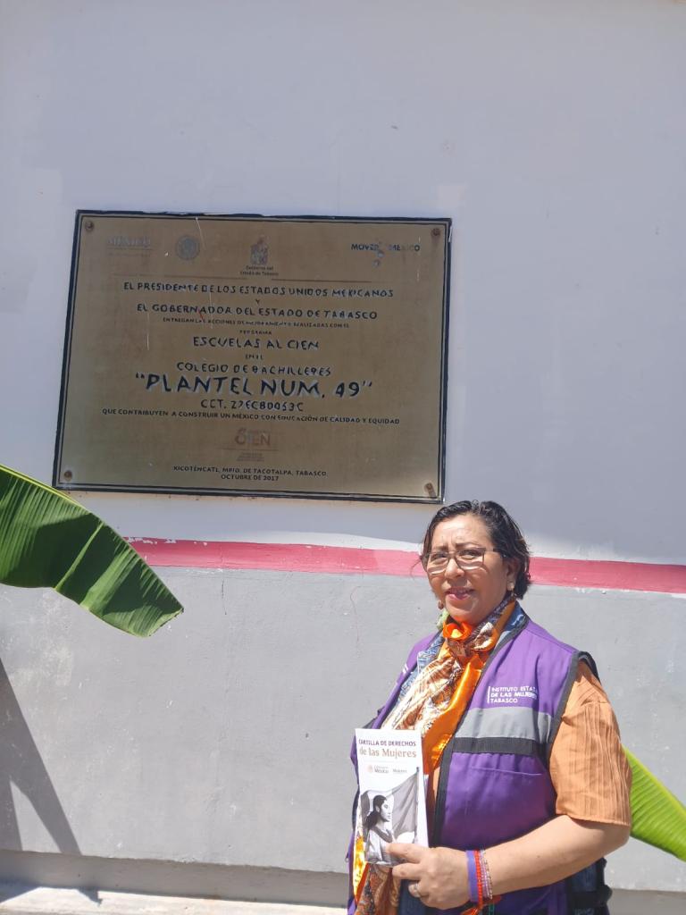 La Subdirección de Fortalecimiento Territorial, llevó a cabo la Colocación de “Puntos Violetas Informativos”, el día 25 de febrero del 2026, en el Colegio de Bachilleres de tabasco No.49 del Municipio de Tacotalpa, Tabasco, con el objetivo de crear espacios seguros y de apoyo para mujeres ofreciendo información, asesoramiento y en algunos casos, atención integral.