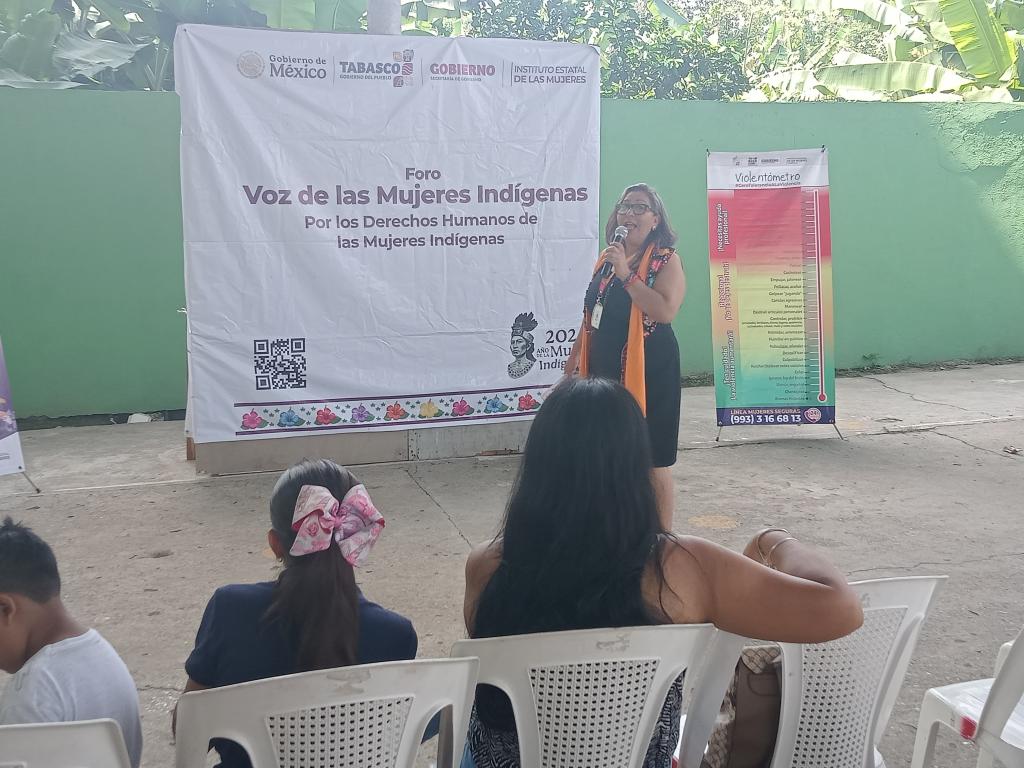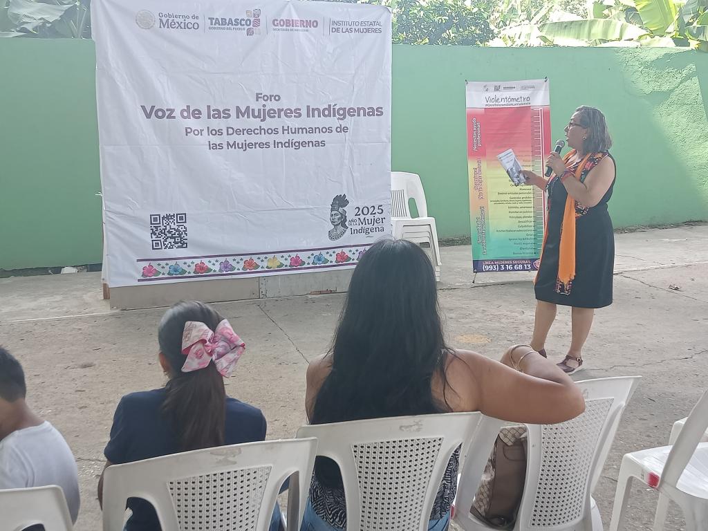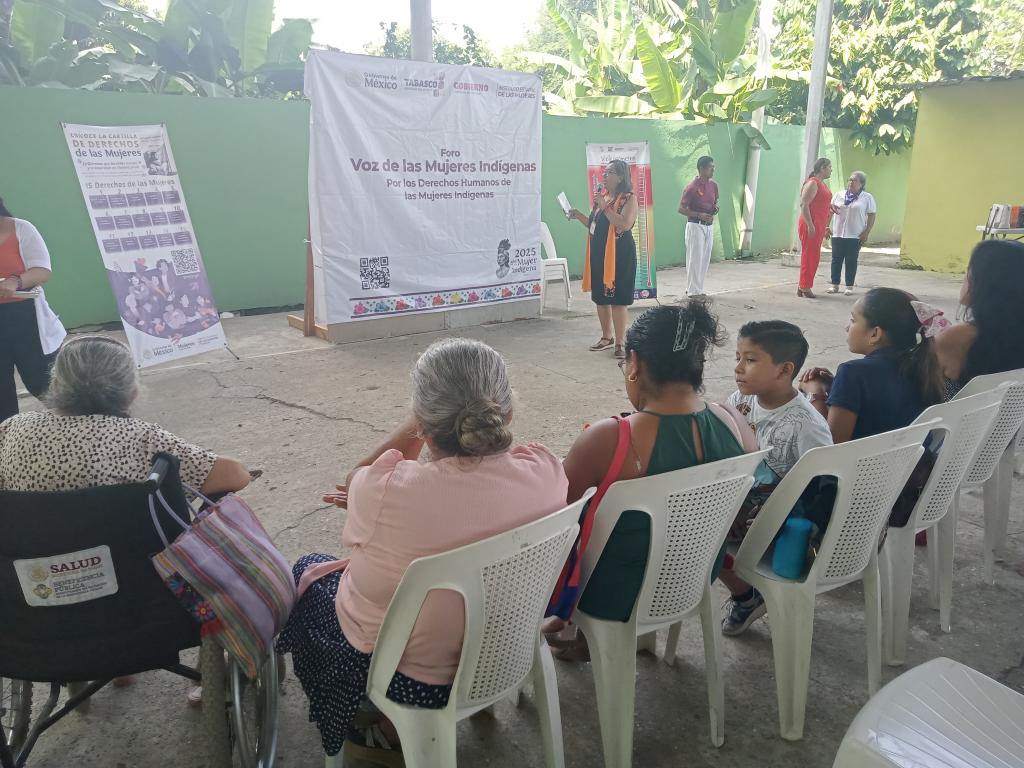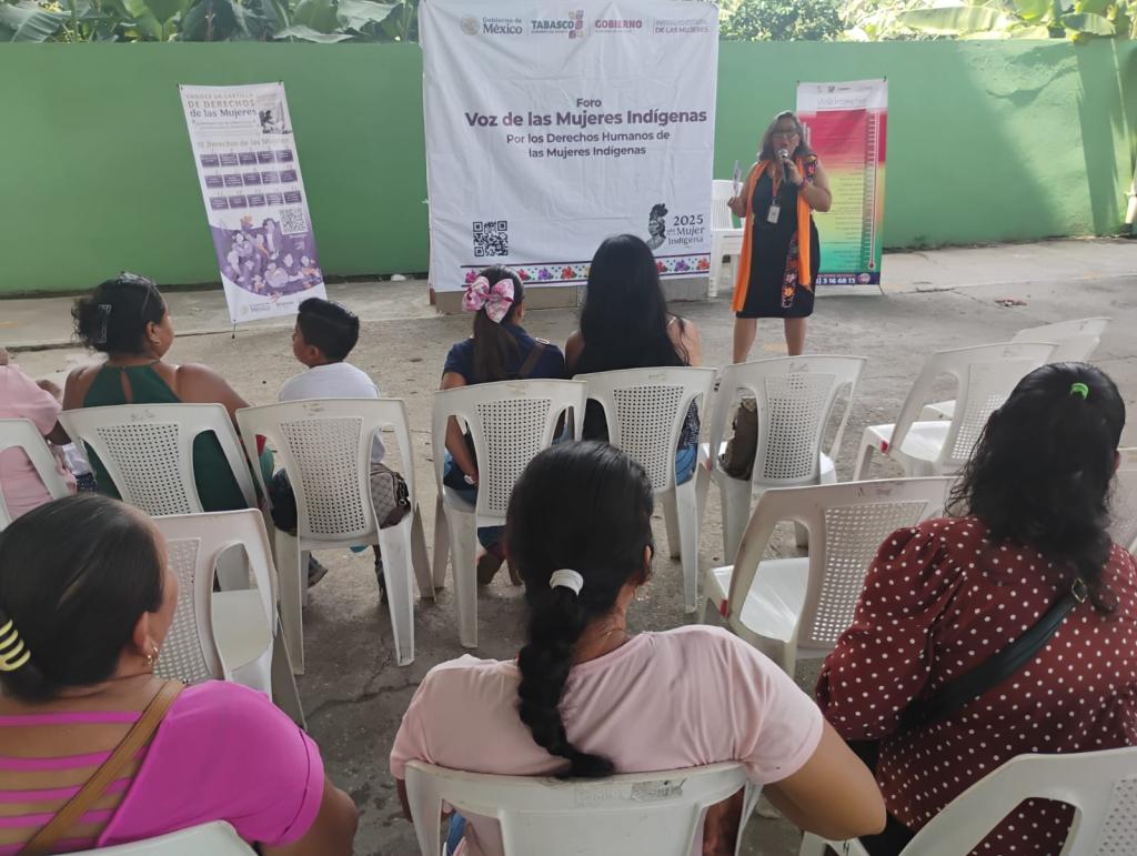 El Instituto Estatal de las Mujeres en coordinación con la Dirección de Atención a las Mujeres del Municipio de Huimanguillo, realizó el Foro: “Voz de las Mujeres Indígenas", el día 25 de julio de 2025, dirigida a las mujeres de la Ranchería Otro Banda 2da. Sección, Huimanguillo, Tabasco, con el objetivo de contribuir a la iniciativa de la Presidenta Claudia Sheinbaum Pardo para preservar la cultura y enaltecer el papel de las mujeres de comunidades indígenas y afroamericanas, reconociendo su historia, legado cultura y aportaciones al país; así como su la importancia de su participación en la construcción de futuro más justo e incluyente.