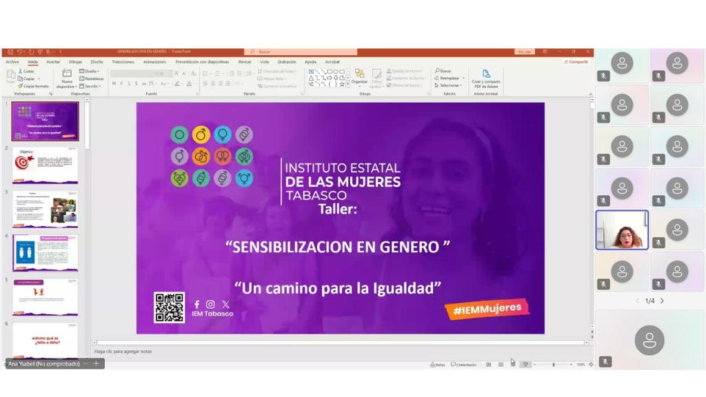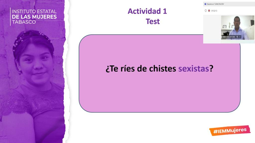 El Instituto Estatal de las Mujeres a través de la Subdirección de Fortalecimiento Territorial, llevó a cabo la Capacitación: "Sensibilización en Género", dirigido a las maestras y maestros del Instituto Tecnológico Superior del Municipio de Macuspana, con el objetivo proporcionar a las y los participantes los conceptos básicos de género para promover la igualdad a través de la equidad y contribuir a construir una sociedad en donde las mujeres y los hombres tengan el mismo valor, la igualdad de derechos y las mismas oportunidades.